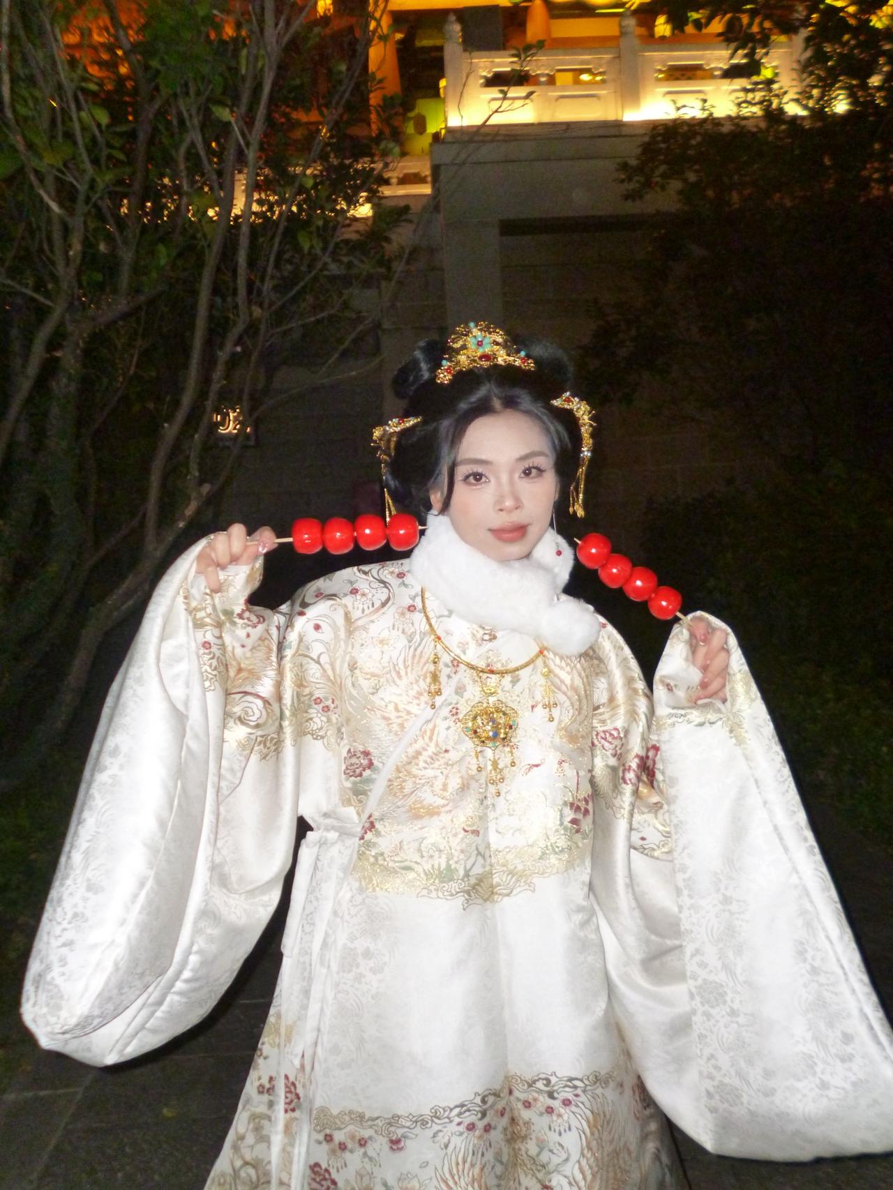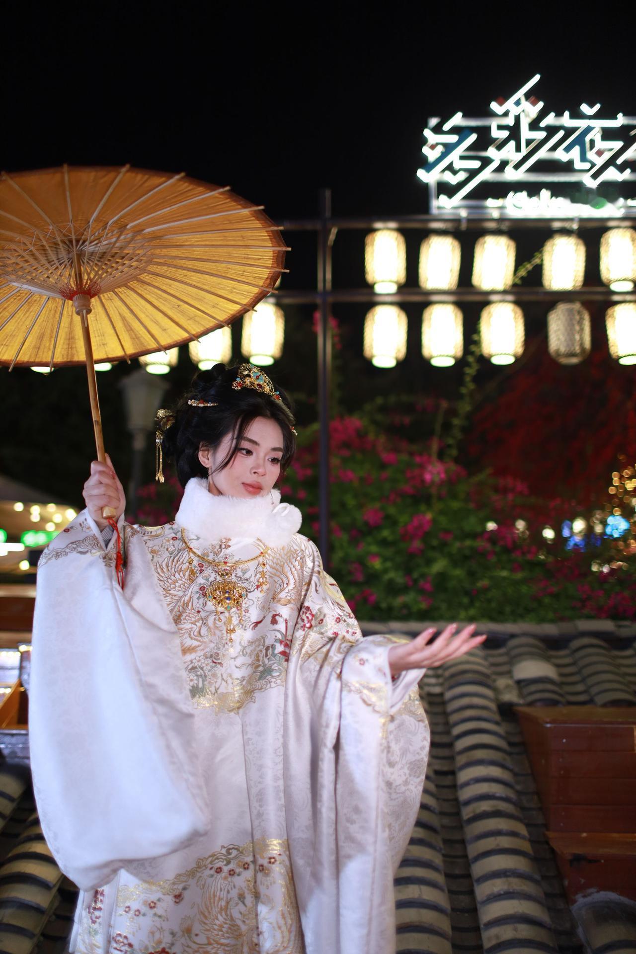 没有风的夜晚还是冷,挡不住喜欢拍照小姐姐的热情。没有笑容,仍可欣赏。~~国风美学