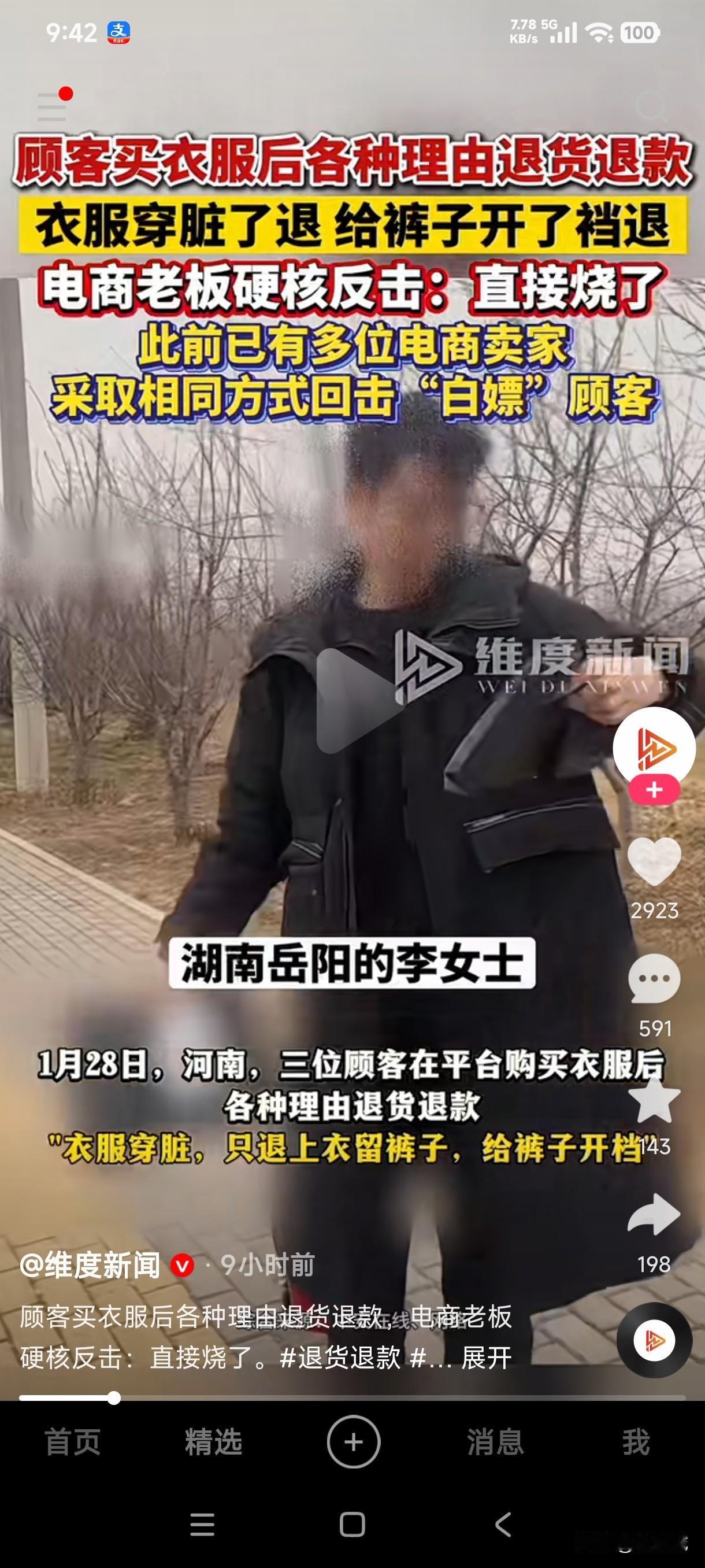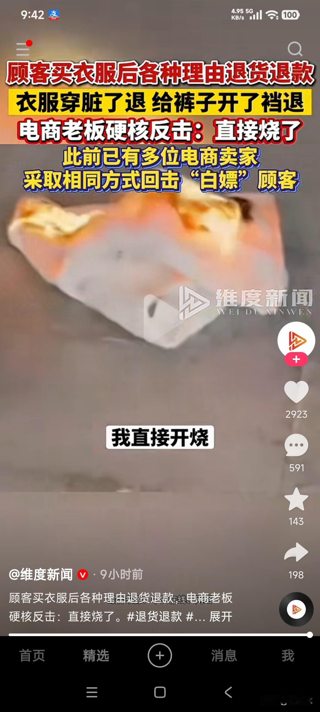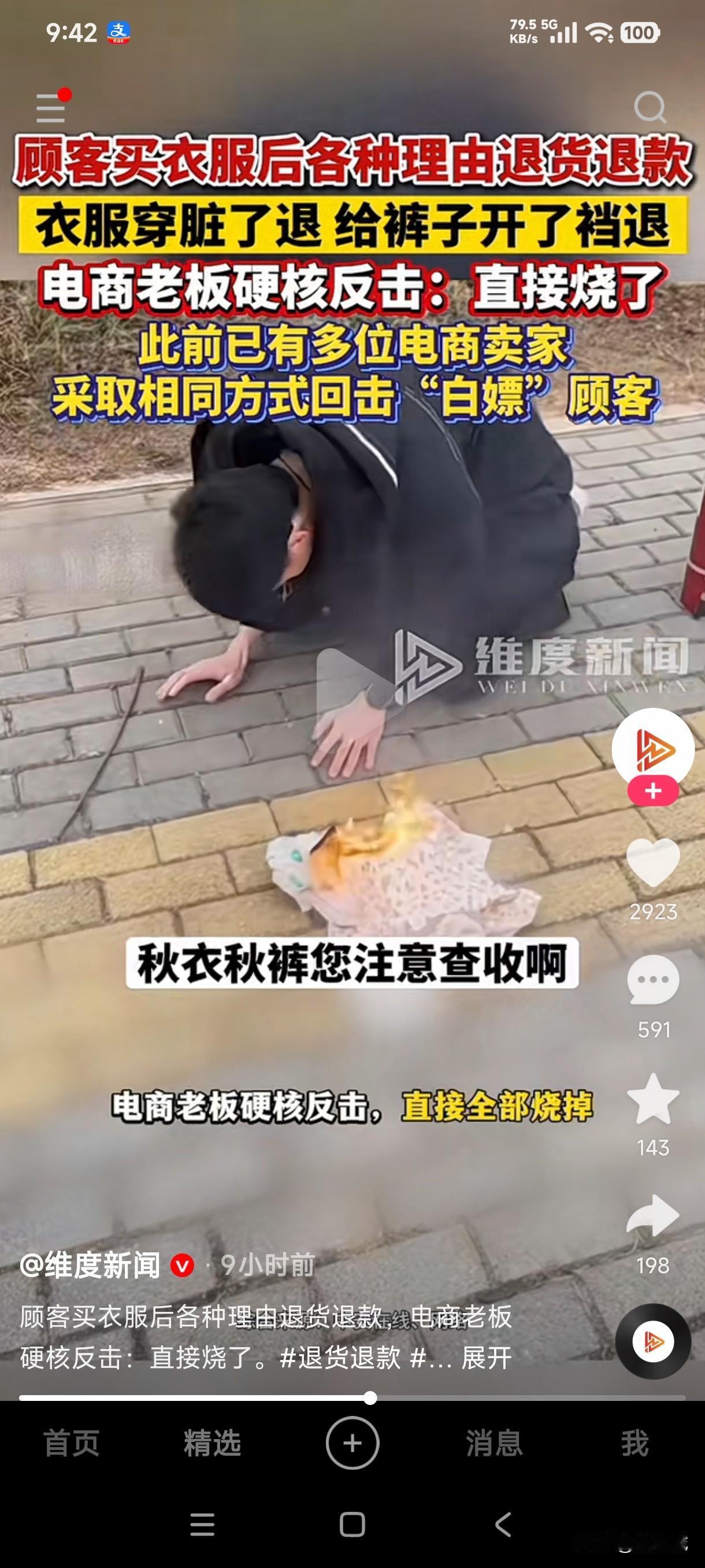 缺德顾客买衣服后各种理由退货退款,穿脏退的,裤子穿开裆退的,电商老板直接硬核反击,一边拍视频一边磕头烧给白嫖顾客。 这种做法是不是太硬气了,这让那些白嫖党看见了不得气死,她们想白嫖不花钱就穿好衣服,没想到商家收到退的货后直接烧给了她们,这做法是不是比她们白嫖还硬气,这明显不就是在诅咒她们这几位缺德顾客吗?她们以为自己的做法都很聪明,殊不知商家对付她们的做法还狠毒,这不就是以其人之道还治其人之身的操作吗?顾客不仁商家也就不义了不是吗?