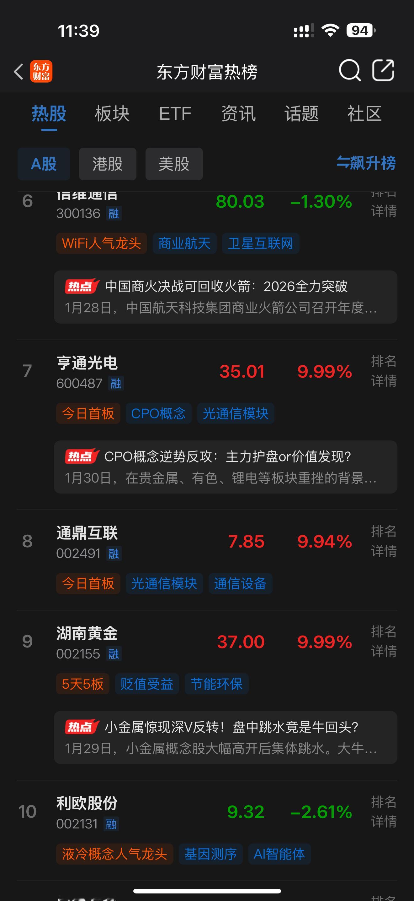 7. 亨通光电:周五首板,现价35.01元,总市值863.6亿元。(CPO概念、光通信模块)