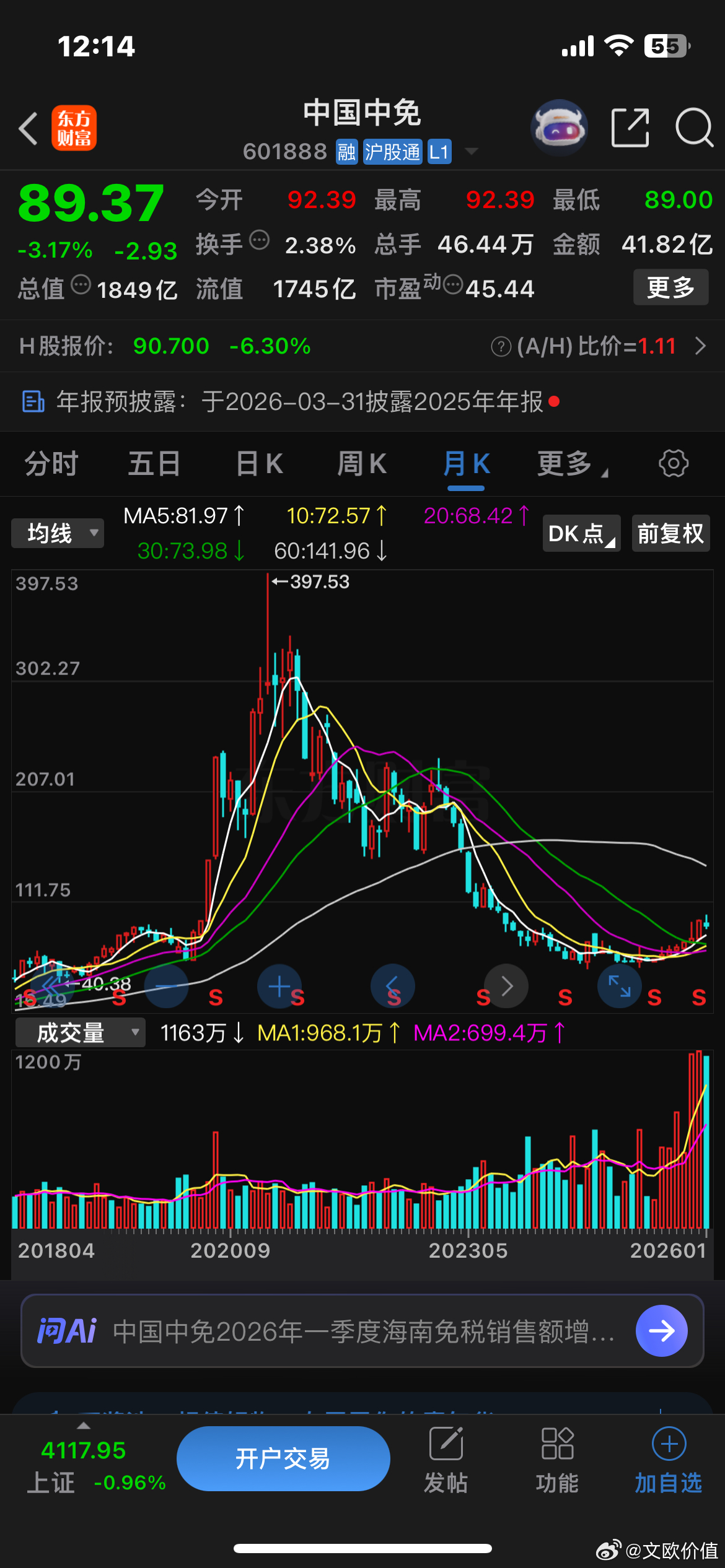 茅台,五粮液,迈瑞医疗,海天味业,中国中免,片仔癀。曾经的白马、龙头、蓝筹,如今的老登股…当年,消费股百八十倍的估值依旧一大堆人去吹捧,如今却无人问津,这就是一个趋势一套台词,同时这也是时代经济科技产业发展的变迁…