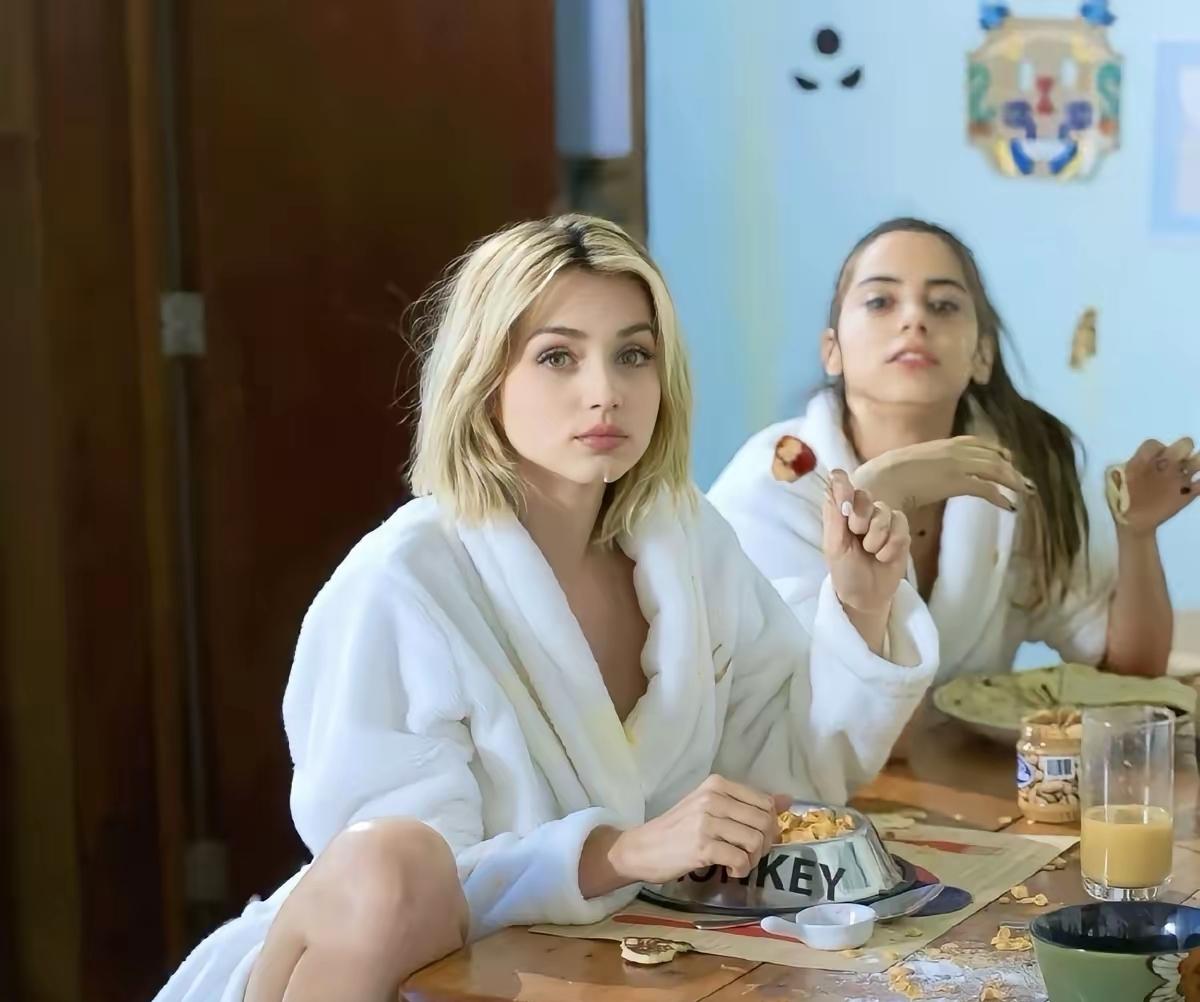 据说是两个能打败尼奥和维客的漂亮性感尤物,尼奥以一敌二最终败下阵。战后两个女孩在餐桌边吃早餐,看起来很放松。