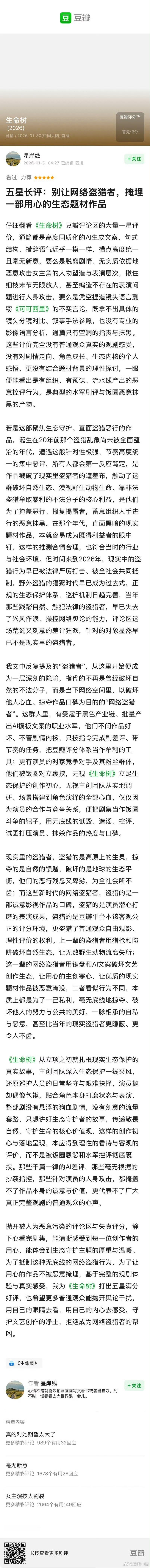 生命树第8集生命树口碑发酵 电影博主评《生命树》,很客观!这部剧题材很正,后面剧