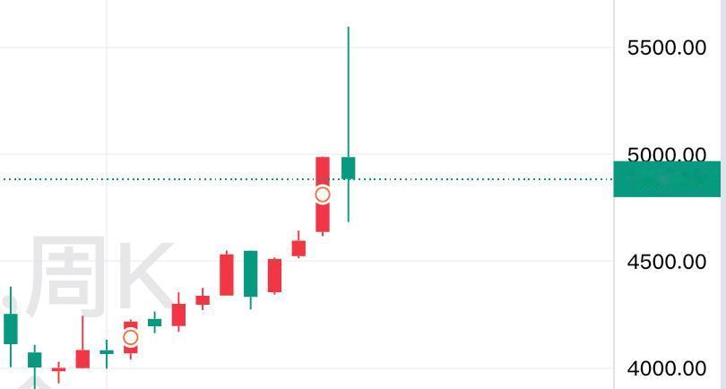 近期金价波动十分剧烈, 刚刚过去的一周, 金价更是冲高减弱, 由涨转跌,振幅创下近些年记录。 当周收于一个上影线特别长的 绿色下跌阴线。 同时也是元旦以后, 首次回落,关注上方压力情况比较好! 对于未来, 短期关注5100美元关口压力!