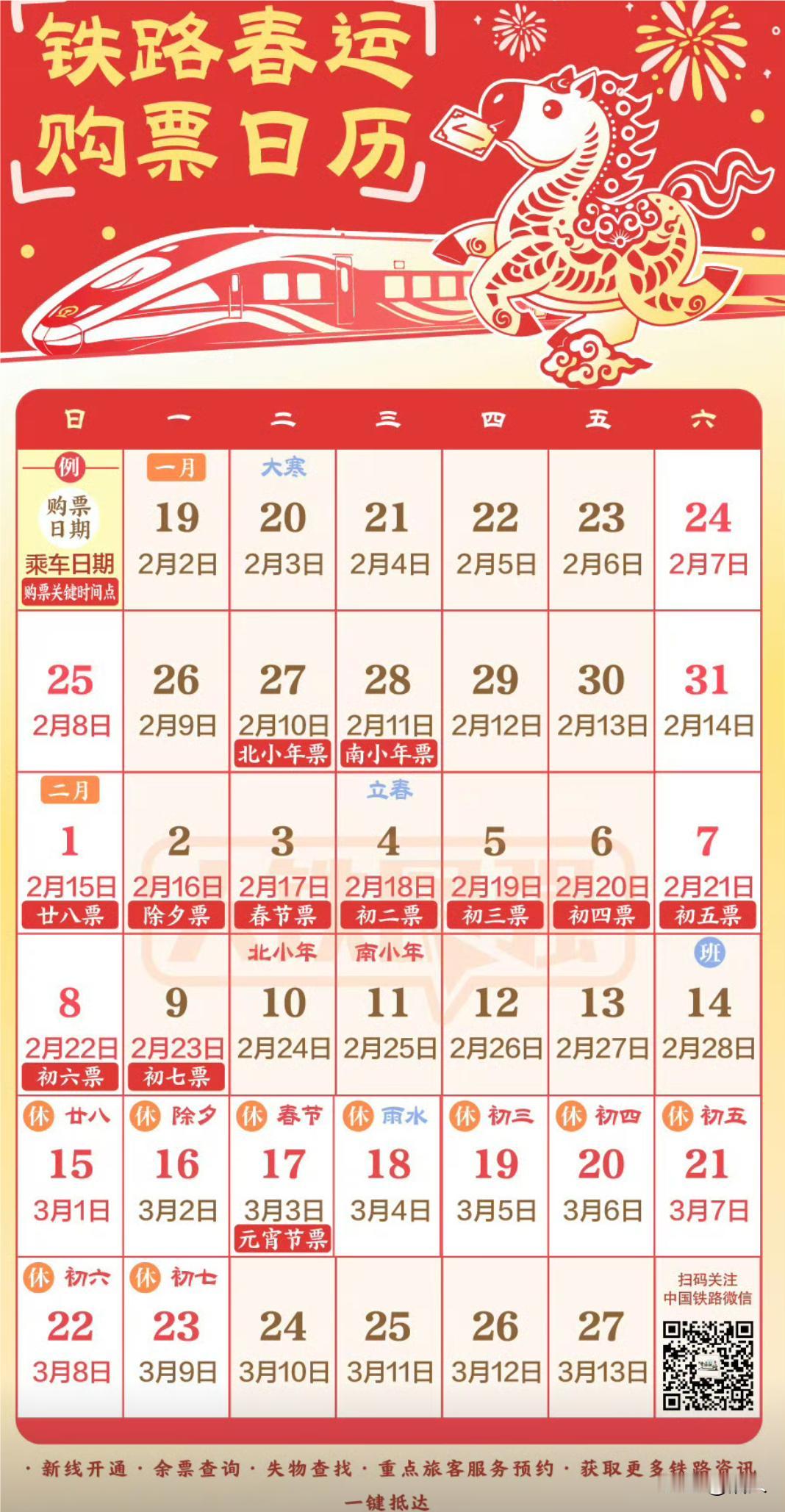 春节假期首日火车票今日开售 2月1日起,2026年春节假期首日2月15日的火车票正式开抢,返程票也进入抢购倒计时,北京等多地热门方向车次一开售就秒光,今年春运单日客流峰值预计达3.4亿人次。
