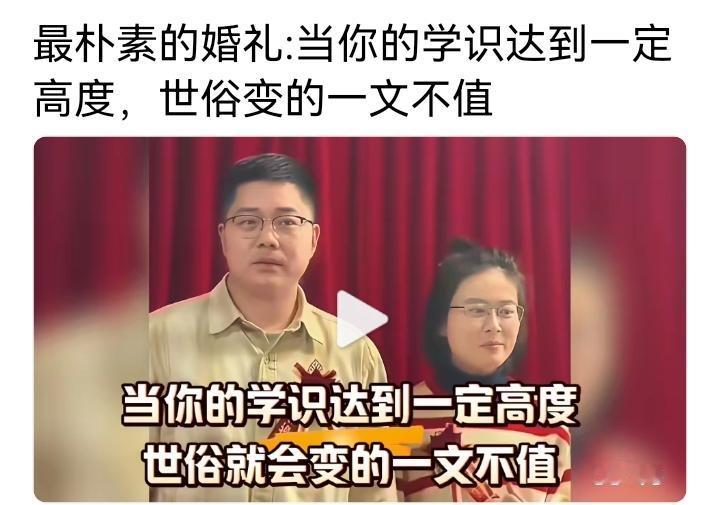 这场没有钻戒、没有婚纱的婚礼,凭什么刷爆全网? 当我们刷到这场“朴素到极致”的婚礼时,评论区瞬间炸了。 新人没有穿华丽的礼服,没有交换昂贵的钻戒,甚至没有鲜花和司仪。他们只穿着简单的衬衫,在红色幕布前完成了仪式。 有人说这是“寒酸”,但更多人却在刷屏“这才是真正的嫁给爱情”。 因为他们的背景,是中国科学技术大学的博士学位。当两个人的学识和精神世界都站在高处时,世俗的排场和物质的堆砌,真的就变得一文不值。 我们总在说“面包和爱情”,但在他们身上,我们看到了第三种答案:真正的门当户对,是精神的同频;最好的婚礼,是往后余生的彼此成就。 比起一场盛大的婚礼,他们更在意的是实验室里的共同攻坚,是学术路上的彼此支撑。那些旁人眼里的“不完美”,恰恰是他们眼里的“刚刚好”。 婚礼 无流程婚礼 结婚 幸福