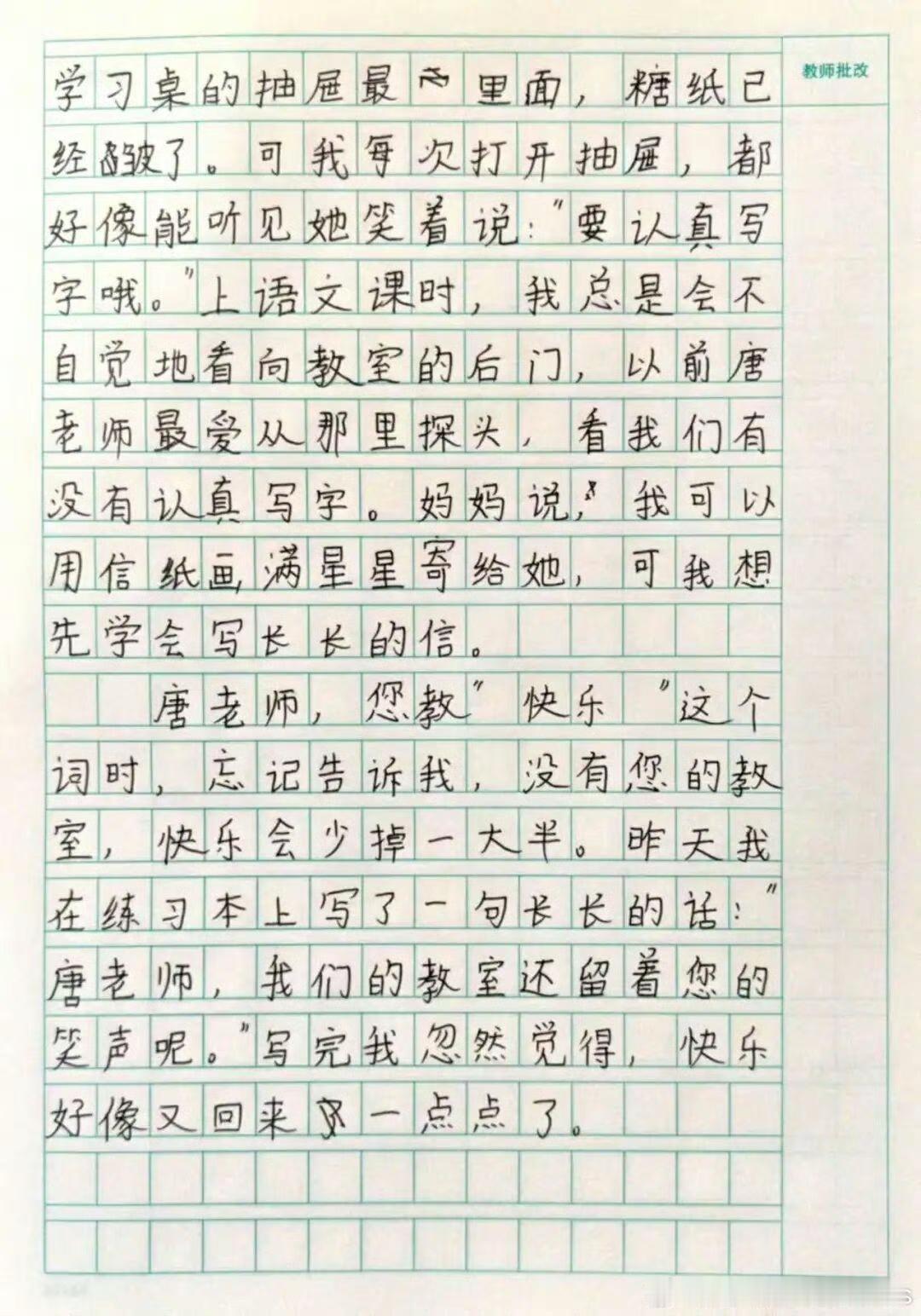 【看福州10岁男孩写下的《与师书》满满的感动】 “唐老师,您教‘快乐’这
