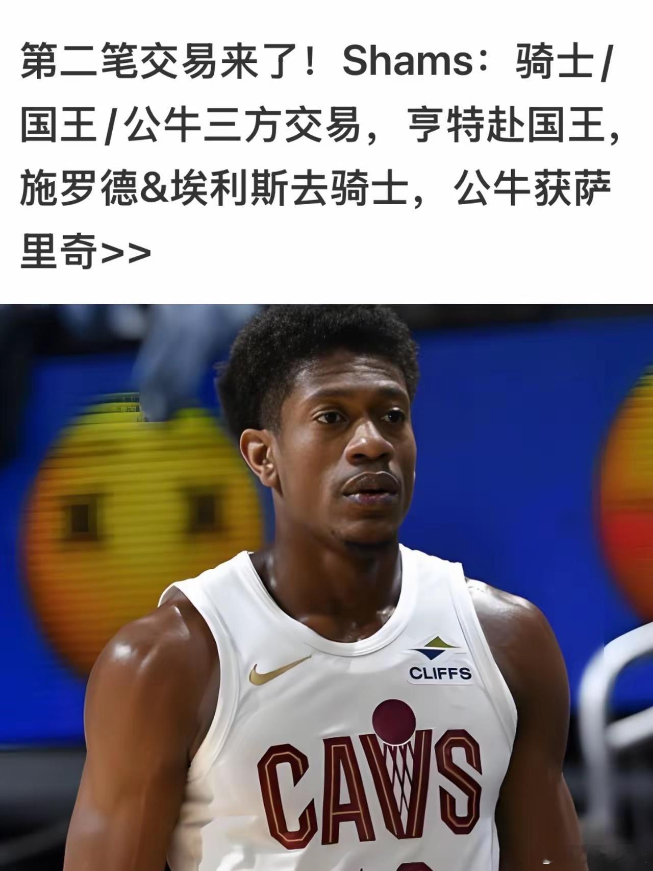 白高兴了,昨天还是传出骑士和湖人马上要达成亨特的交易,结果今日突发消息,据ESPN名记Shams 报道,克利夫兰骑士队将把德安德烈·亨特交易至萨克拉门托国王队,以换取丹尼斯·施罗德和基翁·埃利斯,其中公牛也参与了三方交易,得到了沙里奇和两个次轮选秀权。