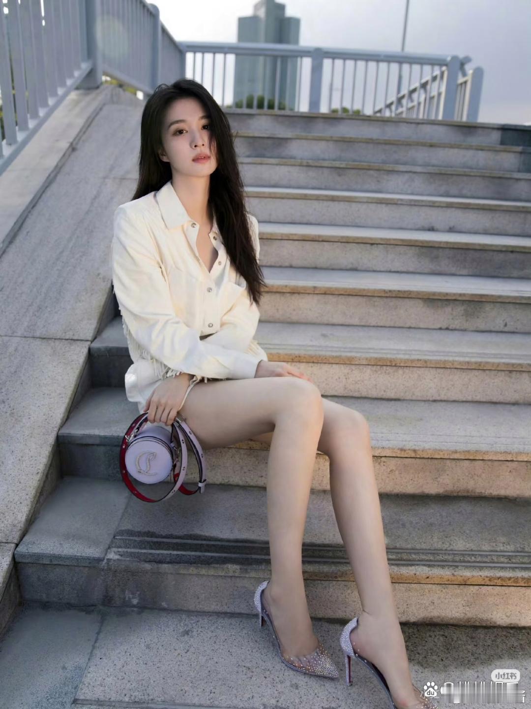 童瑶的气质真是出挑!穿白色提花衬衫连衣裙,简约又高级!