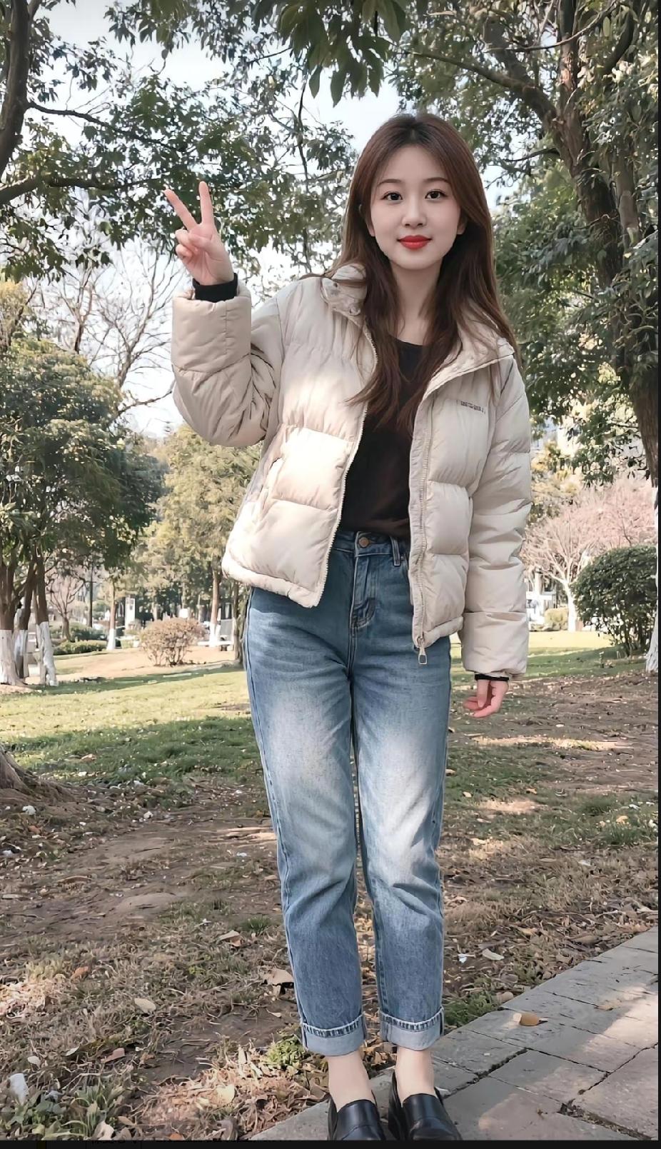 冬日穿搭指南:米色羽绒服+牛仔裤,温暖又时尚!