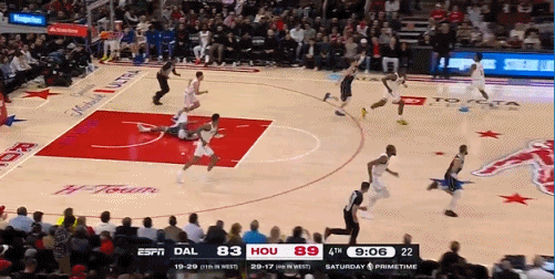 这就是不自信啊 贾巴里的三分球还是没练到家! 自己心里下意识的不敢投三分……[捂脸][捂脸][捂脸] 看看这个球,阿门左侧持球推进带走防守队员后,直接传给了右侧三分线外45°角的贾巴里史密斯,这时候史密斯方圆3米内都没有独行侠的防守队员,绝佳的三分出手机会啊……史密斯犹豫了一下以后还是选择往内带了两步投了一个半截篮!