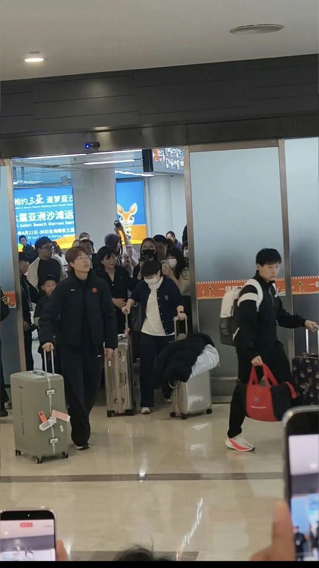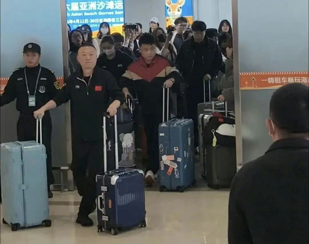 2月1日中午,参加第35届国际乒联-亚乒联盟亚洲杯的中国球员抵达海口美兰国际机场。