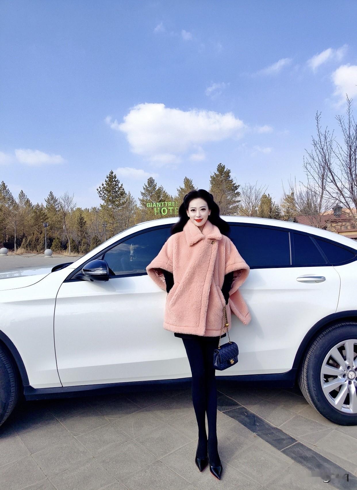 女装穿搭分享推荐粉色毛绒外套搭黑色紧身裤!成熟时尚风