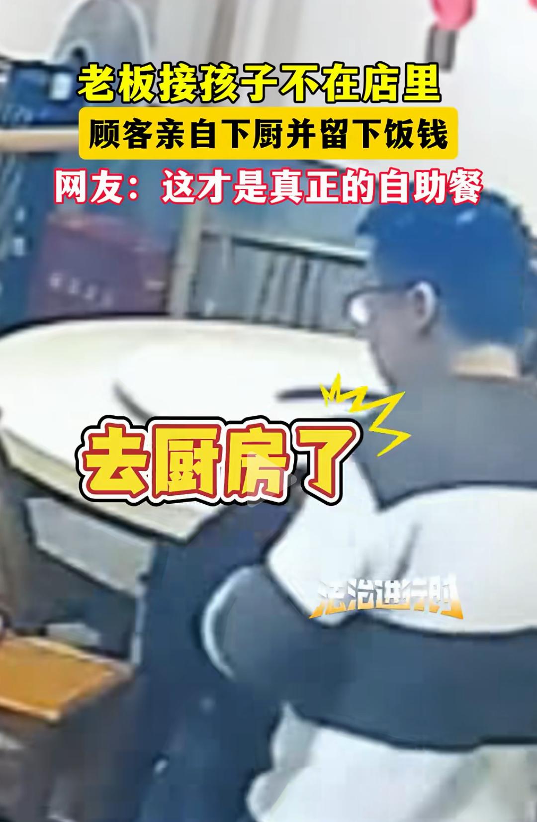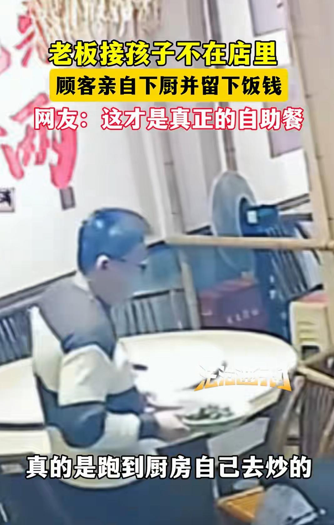 老板不在店顾客亲自下厨并留 饭钱 饭店老板接孩子不在店内,顾客亲 自下厨并留下饭钱,网友:这才是 真正的自助餐 谁能想到,在这个处处讲究效率、处处防备算计的时代,竟然还有人能在一家空无一人的饭店里,心安理得地系上围裙,像回了自家厨房一样掂勺炒菜。更让人心头一热的是,吃饱喝足之后,他没有趁虚而入溜之大吉,而是认认真真地扫码付了账,甚至可能还多留了几块钱。 为什么这个小小的举动,能瞬间刷屏全网? 因为我们被“冷漠”太久了。平时进店,我们习惯了扫码点餐的冷冰冰,习惯了催促服务员的急匆匆。但在这一刻,规矩消失了,信任却像野草一样疯长。老板敢把店门敞开去接孩子,那是基于对这个社会的“托付”;顾客进门不抱怨、不离开,反而自己动手,那是对生活最大的“体谅”。 这背后,藏着一种洞察人性的高级感:最高级的生意,从来不是买卖,而是人情。 老板接的是孩子,接的是家庭的责任;顾客下的是厨,炒的是对善良的致敬。这种“你不见我,我却不亏你”的默契,简直是给这个焦虑的社会喂下了一颗定心丸。它告诉我们:即便生活偶尔兵荒马乱,即便世界有时充满戒备,但只要你愿意交付信任,总会有人还你一份体面。 看到这里,你是不是也想起了那个在深夜为你留灯的陌生人?或者那个在你忘带钱时说“下次再给”的小摊主? 这种烟火气里的善意,才是支撑我们在这个硬邦邦的世界里,温柔活下去的底气。这个社会并不完美,但因为有这些“不把自己当外人”的可爱顾客,和“不把顾客当防范对象”的实在老板,才让我们觉得:人间,真值得! 你对这种“自助式信任”怎么看?如果你是那位老板,看到空空的碗筷和到账的提醒,你会想对这位“大厨”说点什么?欢迎在评论区,分享你遇到过的那些温暖瞬间!