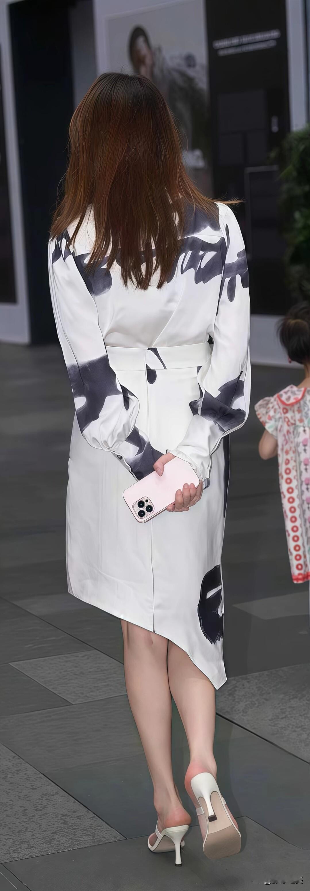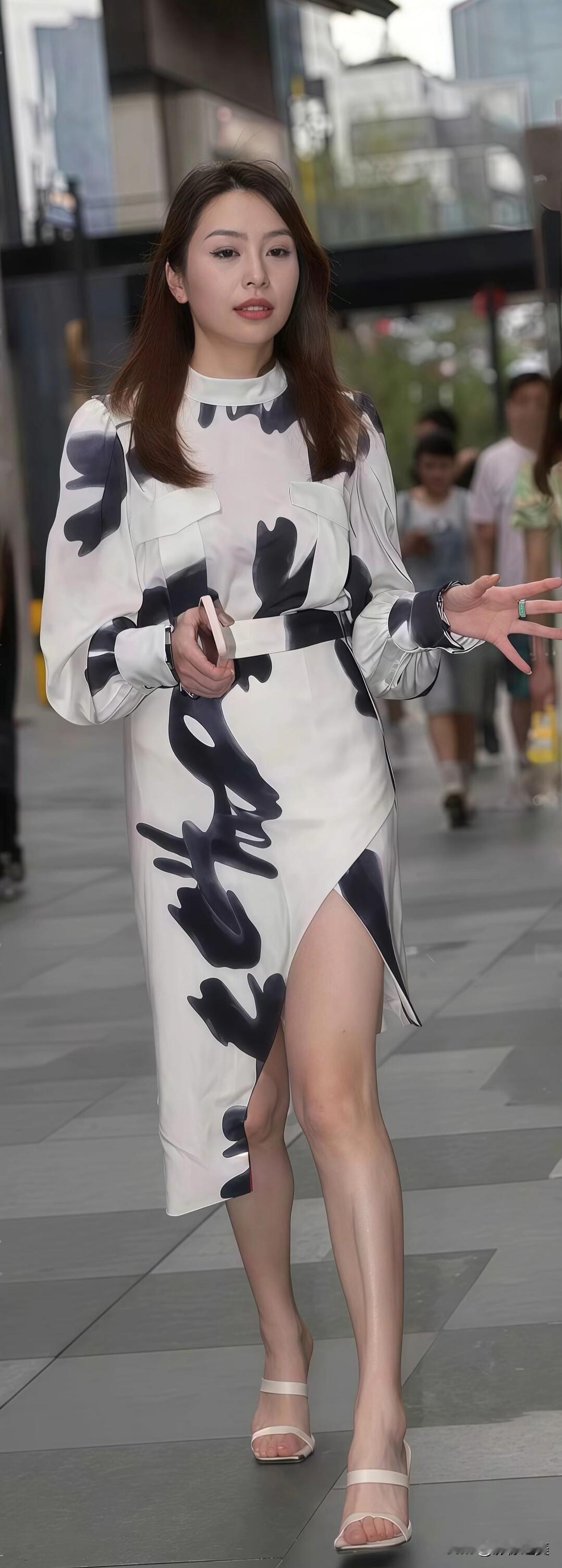 一袭水墨印花裙,如流动的写意画,漫步街头,自成一道雅致风景。
