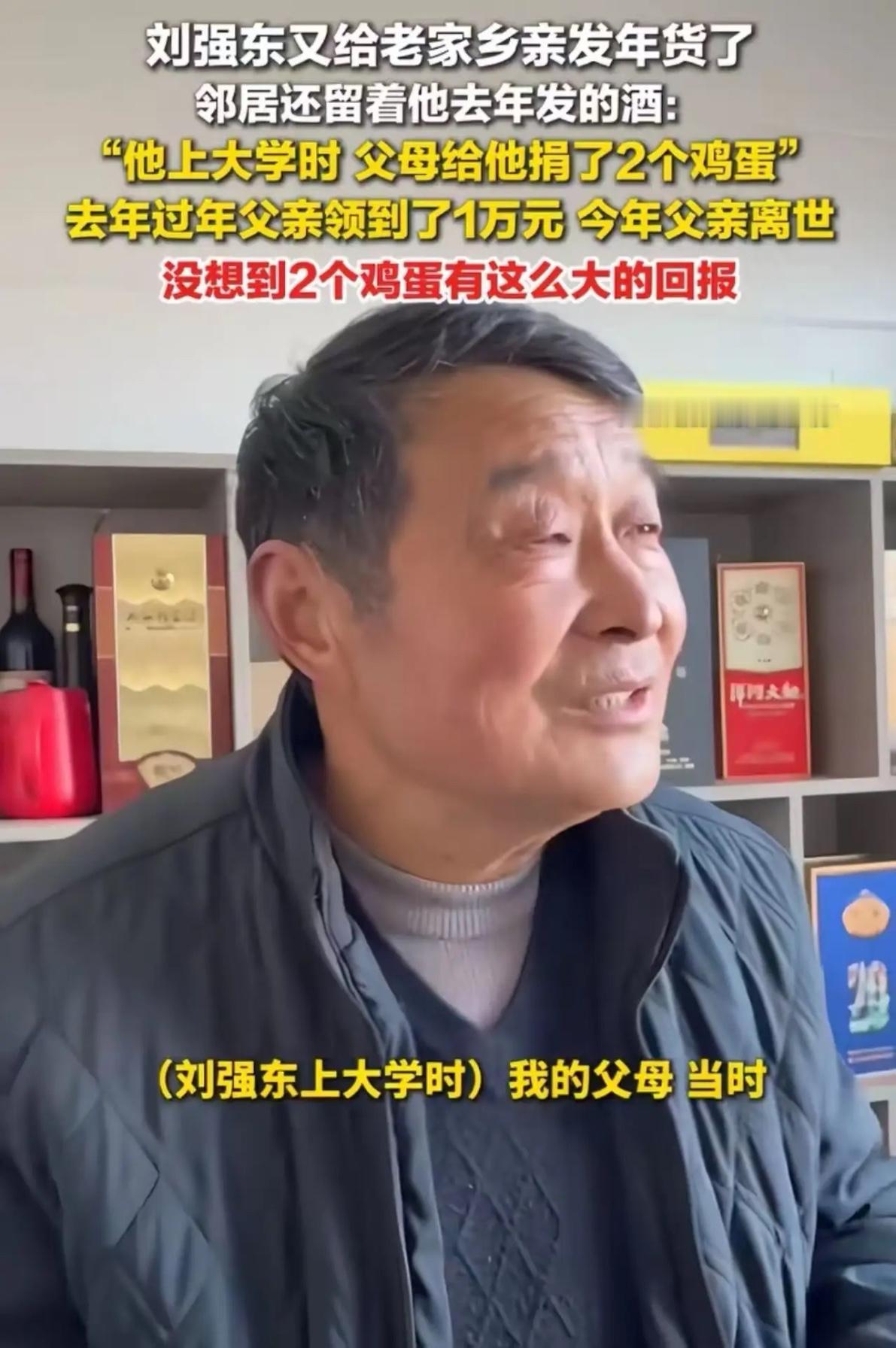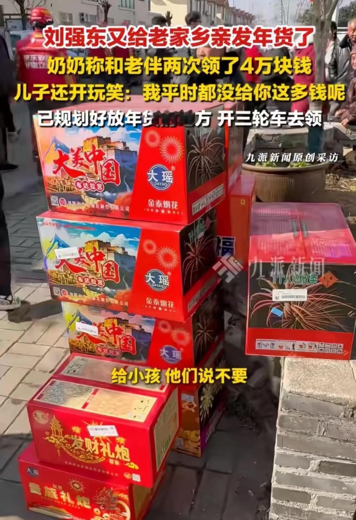 这才是真正的“富而不忘本”!刘强东又给老家乡亲发年货了,一个老奶奶说:“我和老伴两个人领了4万块钱,儿子平时都没给我们这么多钱呢!”网友:这才是实实在在的扶持!假如有一天刘总有困难发不起年货希望乡亲们能理解! 刘强东再发年货:富不忘本的暖心之举 “这才是真正的‘富而不忘本’!”近日,刘强东再次给老家乡亲发年货的消息在网络上引发热议,众多网友纷纷点赞,称其为实实在在的扶持。 临近春节,刘强东心系家乡,为江苏宿迁光明村的乡亲们准备了丰厚的年货。从米面粮油到家电用品,从现金红包到各类生活物资,每一份年货都饱含着他对家乡的深情厚谊。发放现场热闹非凡,乡亲们的脸上洋溢着幸福的笑容,那是一种被惦记、被关怀的温暖。 一位老奶奶激动地说:“我和老伴两个人领了4万块钱,儿子平时都没给我们这么多钱呢!”简单的话语,却道出了内心最真实的感受。这4万块钱,对于老奶奶一家来说,或许是一笔不小的数目,能让他们在过年时过得更加宽裕、舒心。而对于刘强东而言,这只是他回馈家乡众多方式中的一种。 多年来,刘强东一直致力于家乡的建设和发展。他出资修建道路、改善学校设施、助力乡村产业振兴,为家乡的脱贫致富和现代化建设贡献了自己的力量。他的善举不仅改变了家乡的面貌,也让乡亲们的生活越来越好。 此次发放年货,网友们纷纷留言表达自己的看法。有人说:“刘强东这种富不忘本的精神值得所有企业家学习,他用自己的行动诠释了什么是责任与担当。”还有人表示:“这才是实实在在的扶持,不像有些企业只是做表面功夫,刘强东是真正把乡亲们放在了心上。”更有网友充满温情地提醒:“假如有一天刘总有困难发不起年货,希望乡亲们能理解。” 刘强东的这一善举,如同一束光,照亮了家乡的土地,温暖了乡亲们的心。他用实际行动告诉我们,无论走得多远、飞得多高,都不能忘记自己的根。在这个物欲横流的时代,他的富不忘本显得尤为珍贵。相信在他的带动下,会有更多的企业家加入到回馈家乡、奉献社会的行列中来,共同书写更多温暖人心的故事。这才是真正的"富而不忘本" 刘強东给老家村民发年货