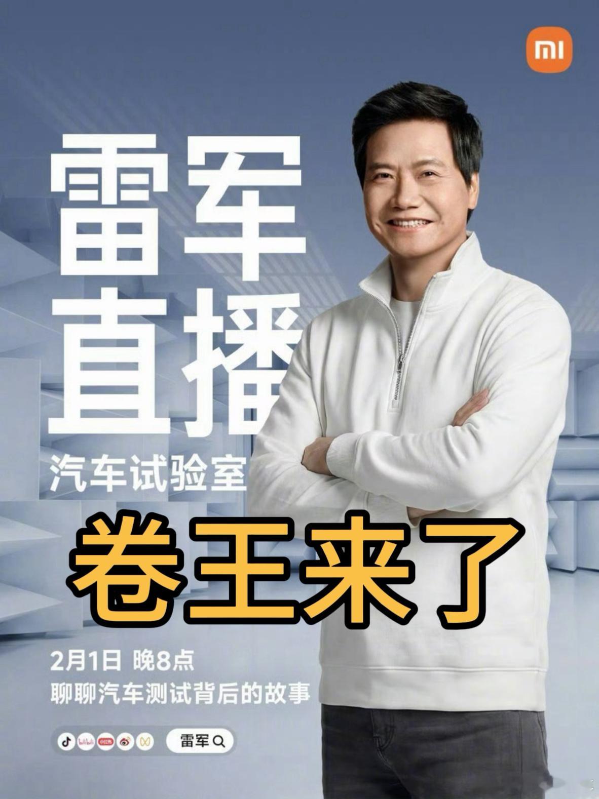昨晚直播说的,二月一号,来了小米汽车雷军