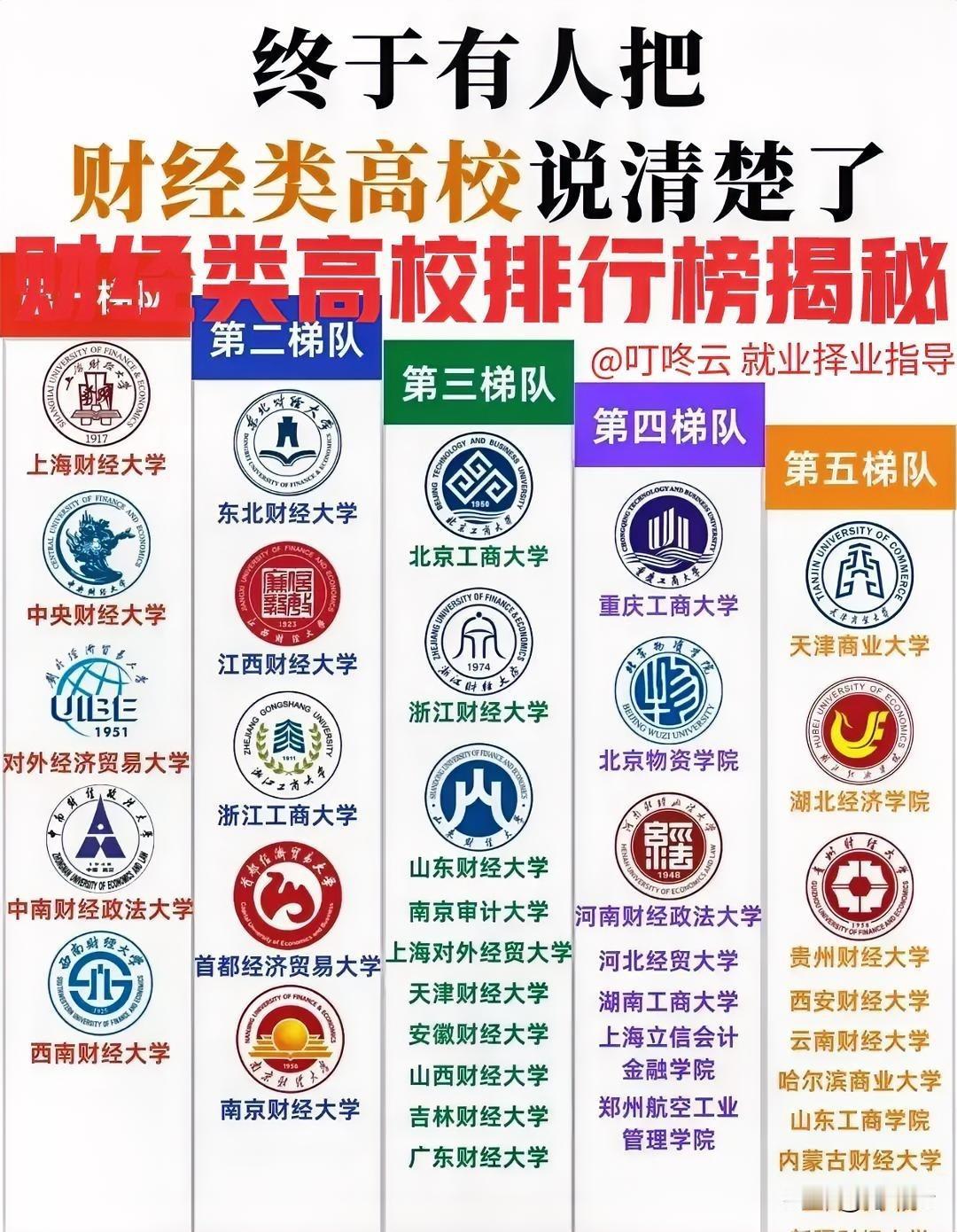 终于说清楚了!2026年中国财经类高校梯次排行榜揭秘!每年银行校招录用最多的是哪些高校?这个排行榜就能说清楚!第一梯队非常亮眼,影响力超越区域,全国知名度极高!比如上财、央财、中财、对外经贸、西财等等;第二梯队,在该区域影响力强!了解更多财经类就业择业指导资料,速速围观揭秘详细内容![点亮平安灯][点亮平安灯][烟花][烟花] 欢迎关注@叮咚云 将优先为粉丝职业规划指导,为你定制最适合的就业择业方案!欢迎留言交流讨论。[来看我][来看我] 免责声明:图片来自网络,仅供参考! 央国企招聘国企招聘中国财经类大学 财经专业 财经院校 财经专业排名