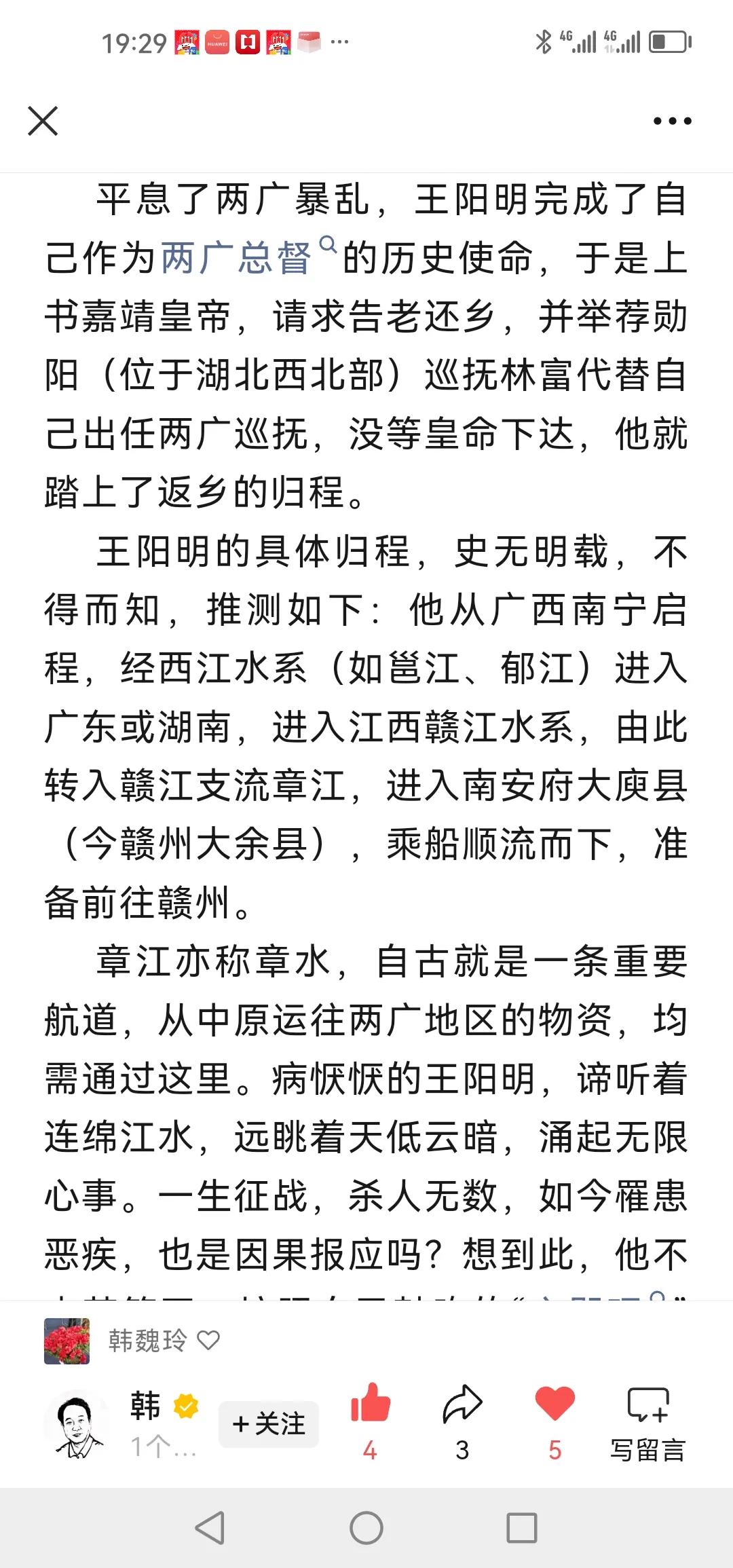 章江亦称章水,自古就是一条重要航道,从中原运往两广地区的物资,均需通过这里。 (韩联社) 病恹恹的王阳明,谛听着连绵江水,远眺着天低云暗,涌起无限心事。一生征战,杀人无数,如今罹患恶疾,也是因果报应吗?想到此,他不由苦笑了。按照自己鼓吹的“心即理”之说,自个儿心里这么想,那就是普遍真理吧?
