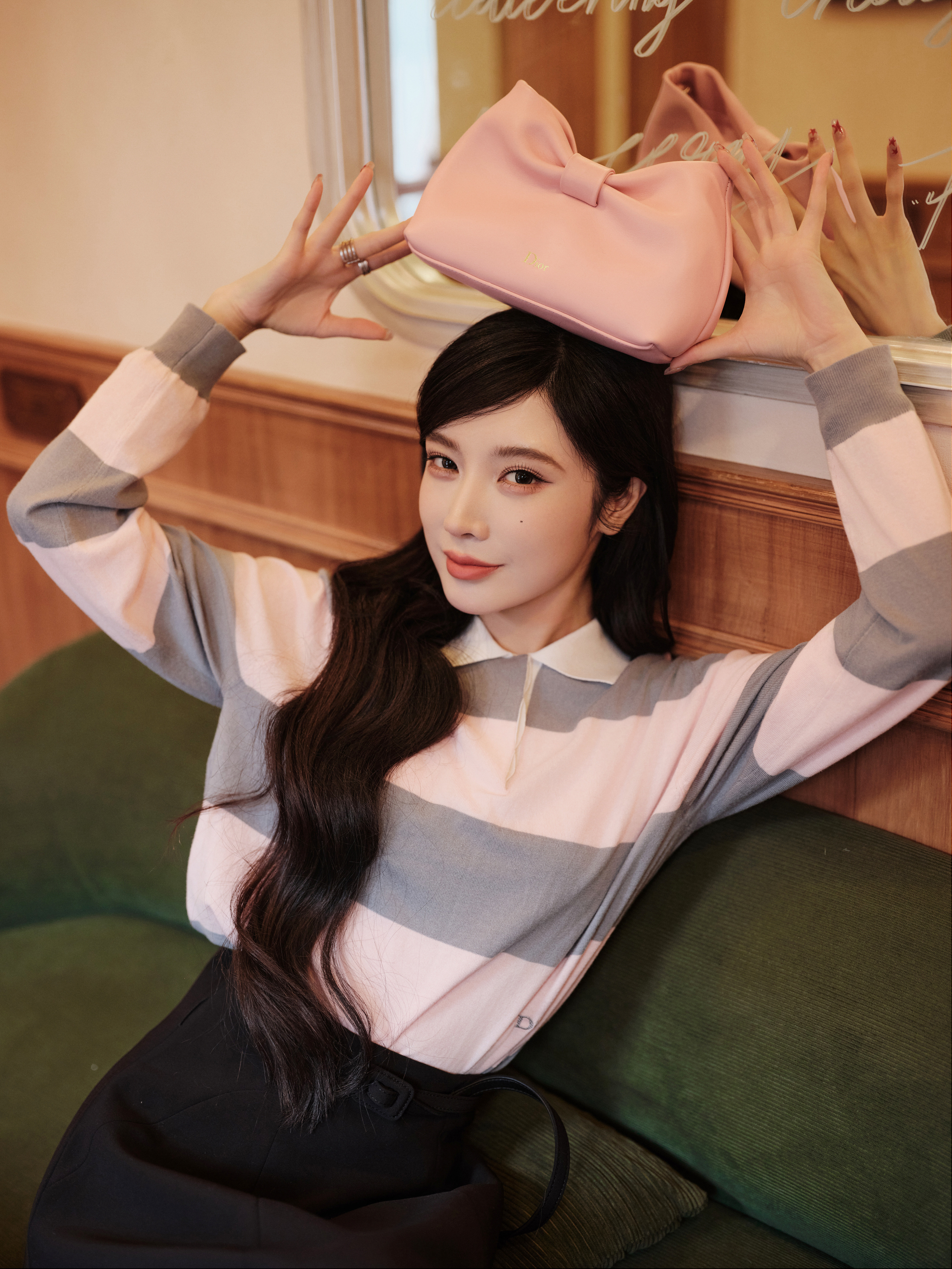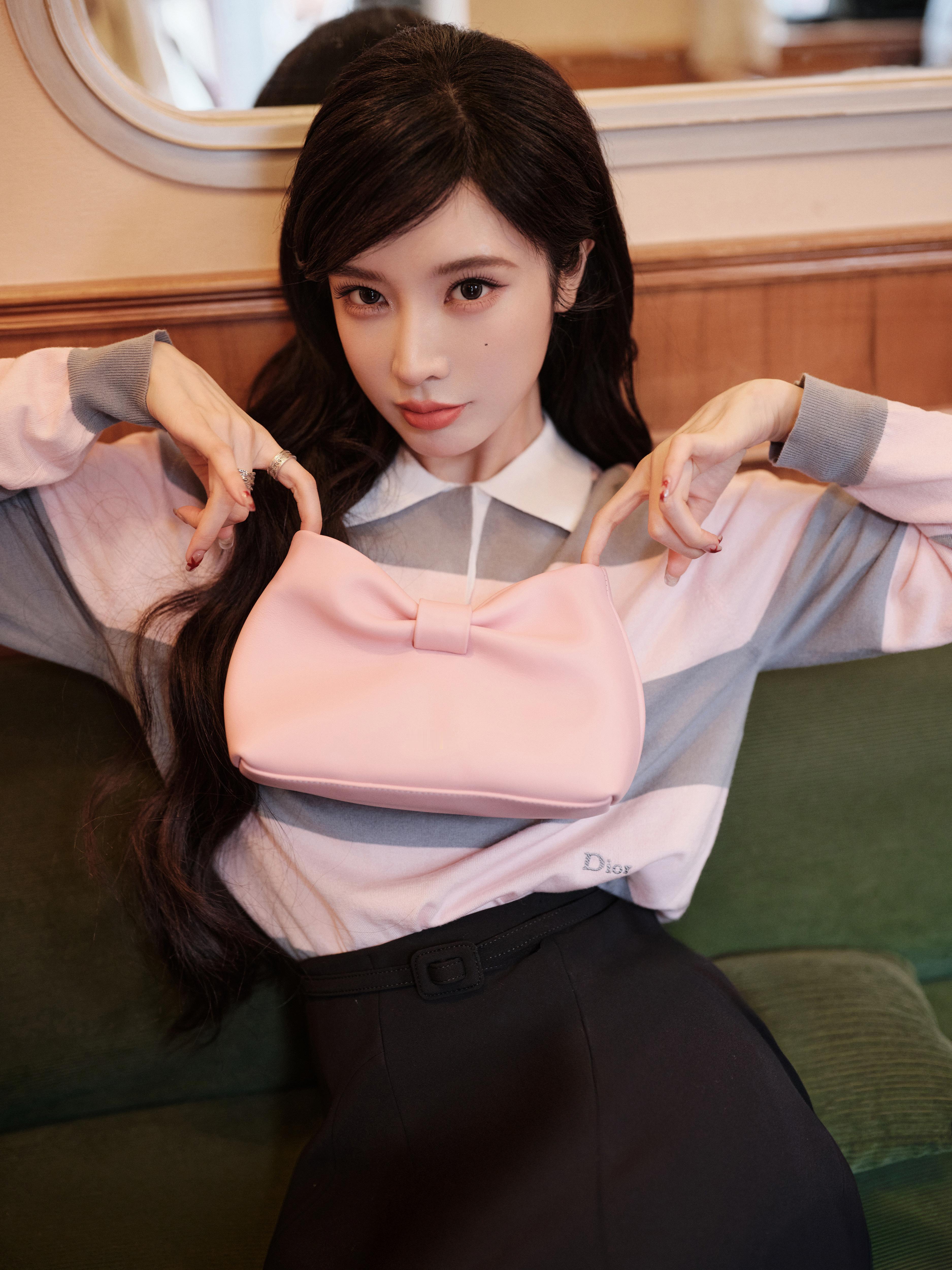 戴燕妮全新Dior大片🈶 简约拼色上衣搭配优雅黑群化身复古灵动的 Dior girl~粉色蝴蝶结单肩包不仅呼应上衣色调,更是为整体增加明媚浪漫感,用极简造型轻松打造高级感😎