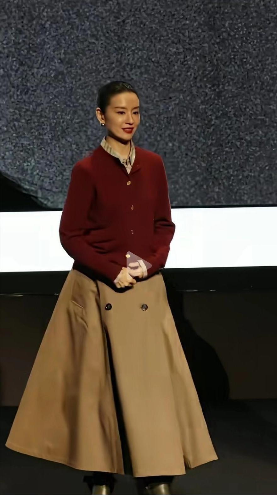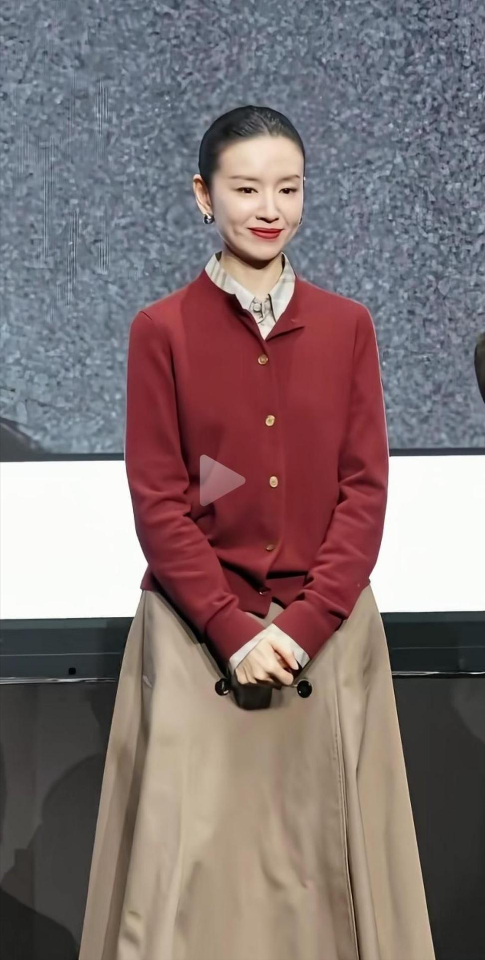不愧是谢霆锋“看上”的美女!虽然穿毛衣出席晚宴,却赢了所有晚礼服。特别是已46岁的她,看起来还像30出头的,身穿一袭简约明媚的基础款朱红小立领毛衣,配卡其色风衣式及踝长裙,脚踩暗金短靴,却格外清新文艺不失优雅范儿,就连不经意间的一个笑颜,都自带一种舒适迷人的自然美,加上这轻盈身姿和从容好气质,状态真绝了!相比满场的华丽和珠光宝气,发现她这独一份的简约利落,温婉大气,清冷贵气...实在太出挑,还真是衣美,人更美......此刻,突然有点理解当年第一次上春晚的谢霆锋,为什么会一眼就被她轻松“迷倒”,选她当新娘了......