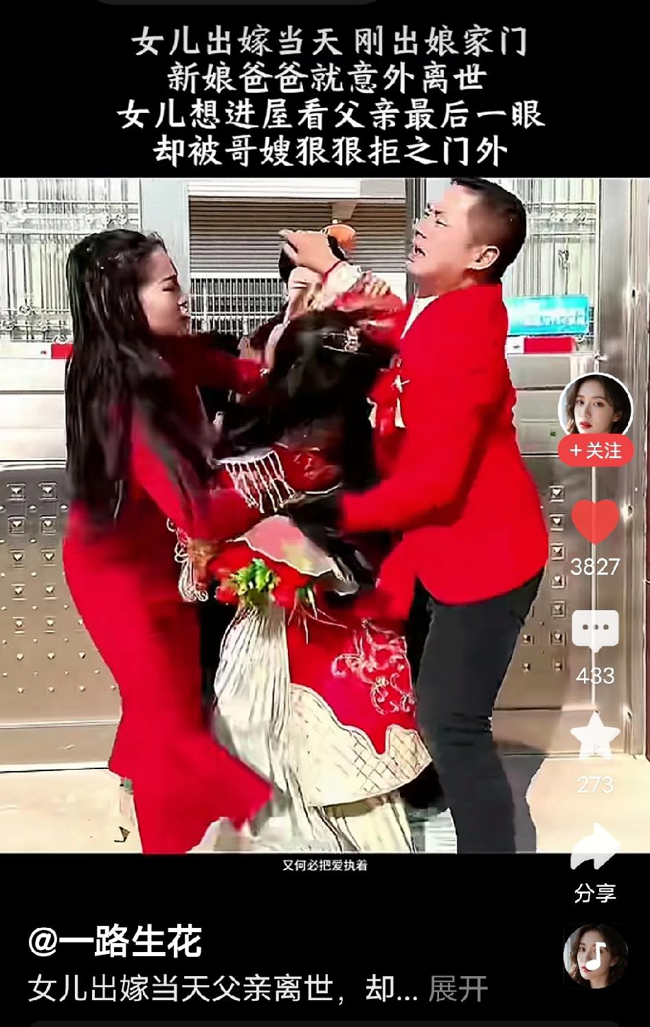 太揪心了!女儿出嫁当天父亲突然离世,想回家见最后一面却被哥嫂拦在门外:“大喜的日子回头不吉利!”该不该见引发网友热议 据头条网友视频显示,福建某地,一位新娘刚穿好绣着龙凤的红嫁衣,挽着母亲的手跨出娘家门,准备踏上婚车,就被堂兄哭喊着叫住:“你爸突发心梗走了!”原本喜庆的鞭炮声瞬间哑火,新娘手里的手捧花“啪”地掉在地上,红嫁衣上的亮片在阳光下刺得人眼疼。 她疯了似的转身往屋里冲,却被冲上来的哥嫂死死拽住——哥哥攥着她胳膊的指甲几乎嵌进肉里,嫂子则挡在铁门前,哭着喊:“今天是你的大喜日子!进了门冲撞了白事,你这辈子都要倒霉的!” 新娘“咚”地跪在冰冷的水泥地上,红嫁衣下摆蹭上了泥点,她攥着铁门的栏杆,指节都捏得发白,哭到声音沙哑:“爸昨天还蹲在院子里给我摘年桔,说要让我带到婆家讨个吉利····…我就看他最后一眼,哪怕只看一眼啊!” 可哥嫂只是反复念叨着“不吉利”,甚至叫来几个亲戚一起,强行把她架上婚车。婚车启动的那一刻,她扒着车窗,不停的朝着家的方向哭喊:“爸爸,对不起!女儿不孝啊!” 这段视频传到网上,立刻引发了全网热议。 - 有网友愤怒谴责:这是什么习俗!妹妹一辈子的遗憾,难道比所谓的“吉利”更重要吗?为了迷信连亲情都不顾了! - 有网友无奈理解:我们老家也有“红白相冲”的说法,老人说大喜日子见了白事,会影响新人一辈子的运势,哥嫂可能也是被传统观念逼的。 这个事情你怎么看呢? 婚礼当天父亲离世 哥嫂拦门不让见最后一面 婚俗与亲情 亲情比迷信重要