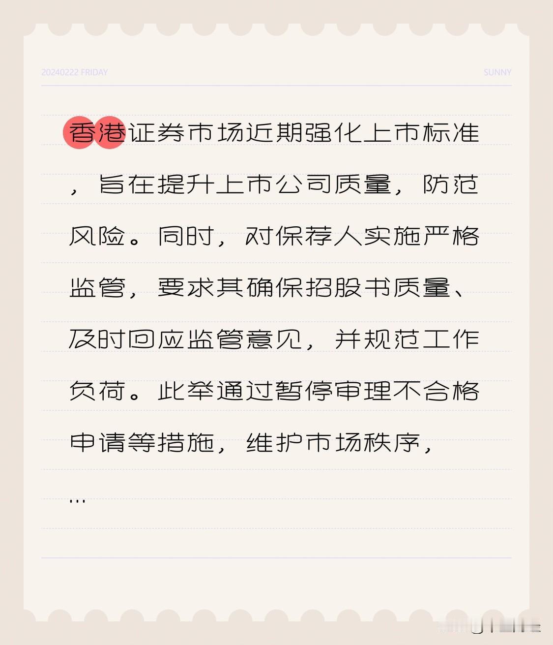 香港证券市场近期强化上市标准,旨在提升上市公司质量,防范风险。同时,对保荐人实施严格监管,要求其确保招股书质量、及时回应监管意见,并规范工作负荷。此举通过暂停审理不合格申请等措施,维护市场秩序,保护投资者利益,推动市场长期健康发展。港美股ipo 企业香港上市 香港证券公司 香港证监会 香港IPO收费 香港股票交易所 港交所上市申请