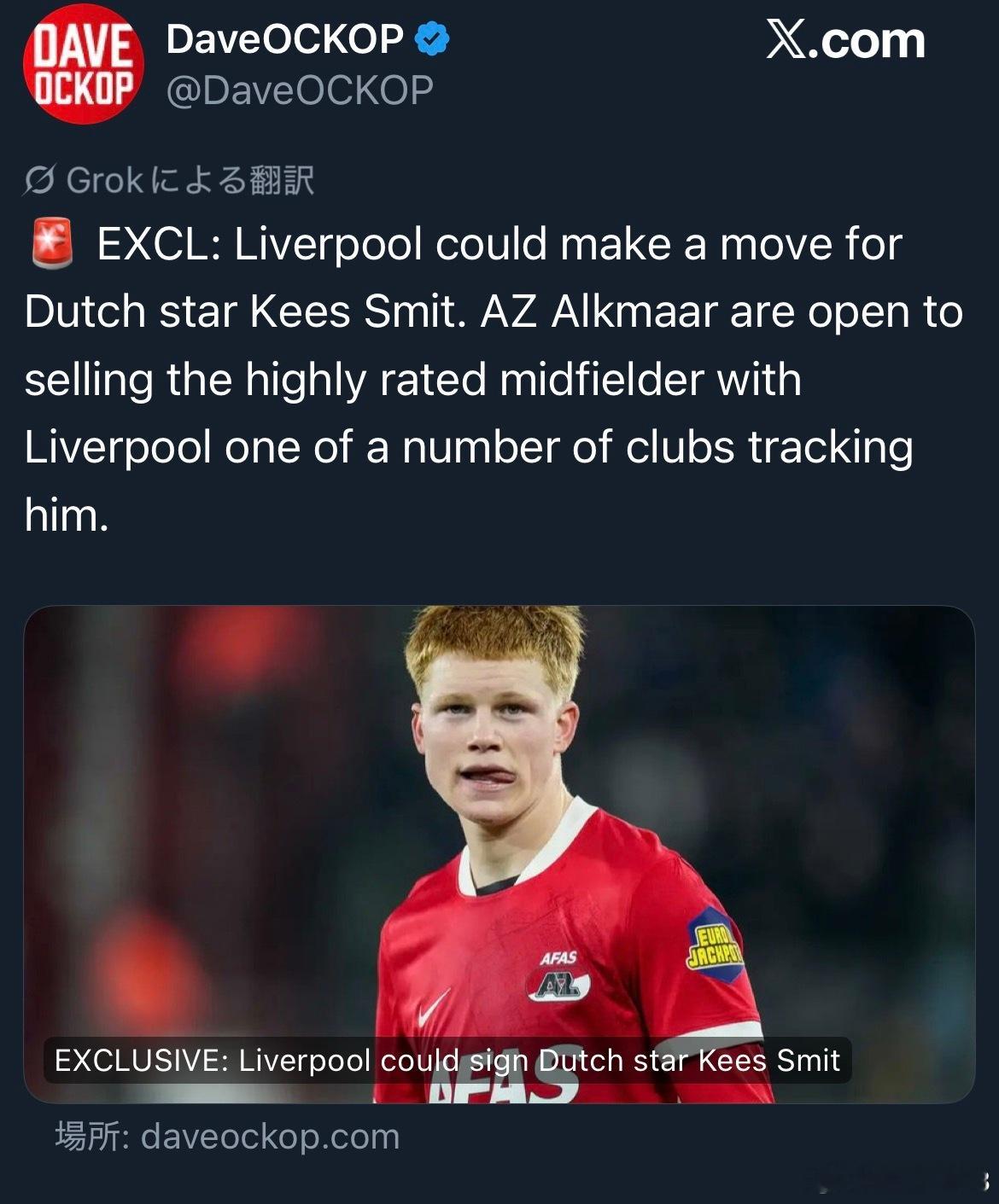 突然一下利物浦的转会新闻多了起来。除了已经坐实的嗨!特勒,按照绿帽的意思,斯洛特貌似还要求引进一名球员。而dave不失时机地抛出了阿尔克马尔中场施密特的消息。越来越有意思了。