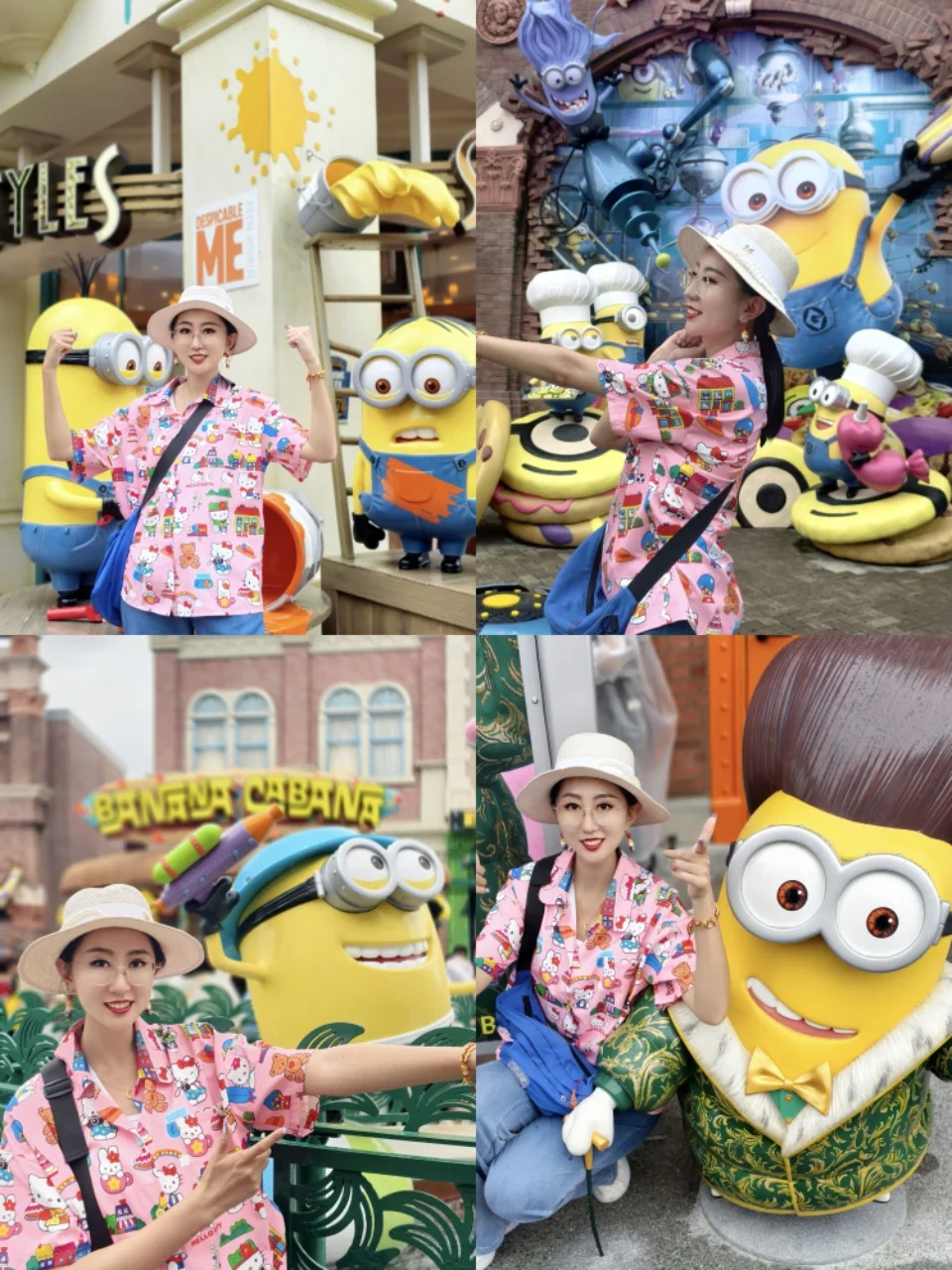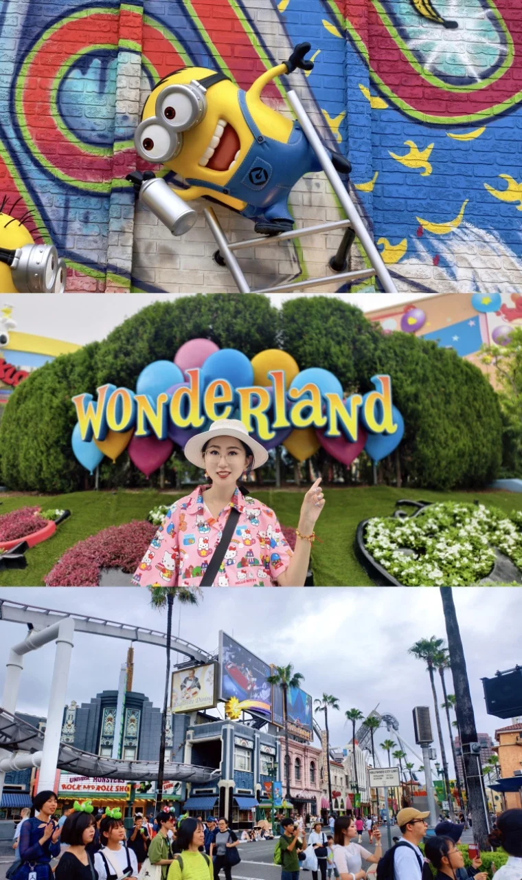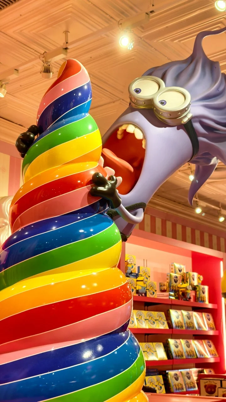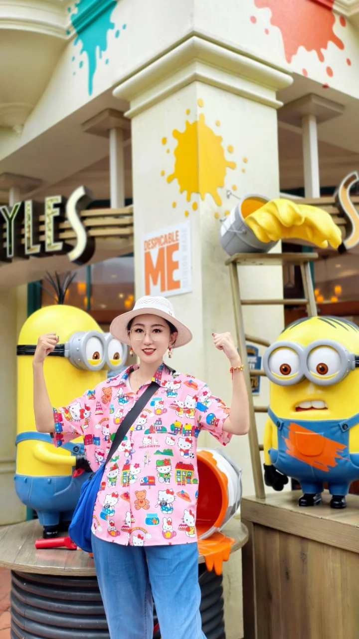 首冲小黄人区,满眼明黄超治愈,爬墙的小黄人雕塑、彩虹螺旋造型的打卡点随处可见,伸手就能贴贴合影,萌到心都化了~拍照出片率直接拉满。