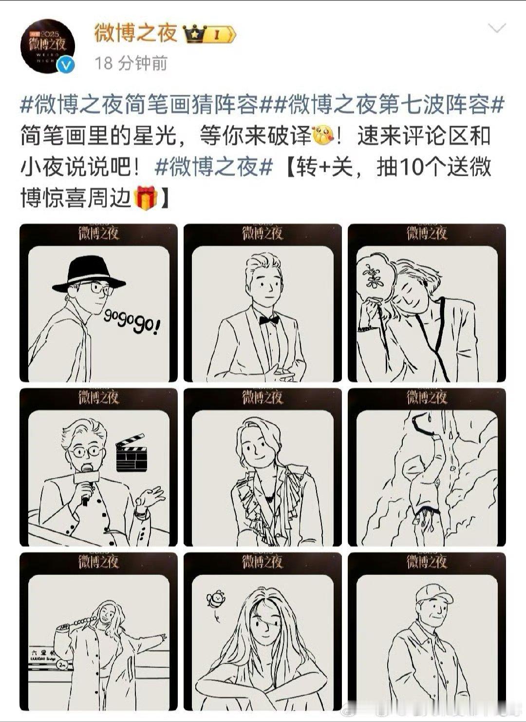 微博之夜第七波嘉宾阵容:邓超、黄渤、惠英红、李少红、舒淇、王一博、姚晨、杨幂、张艺谋、申奥、黄晓明、李冰冰、李宇春、沈腾、吴京、肖战、袁和平、杨紫