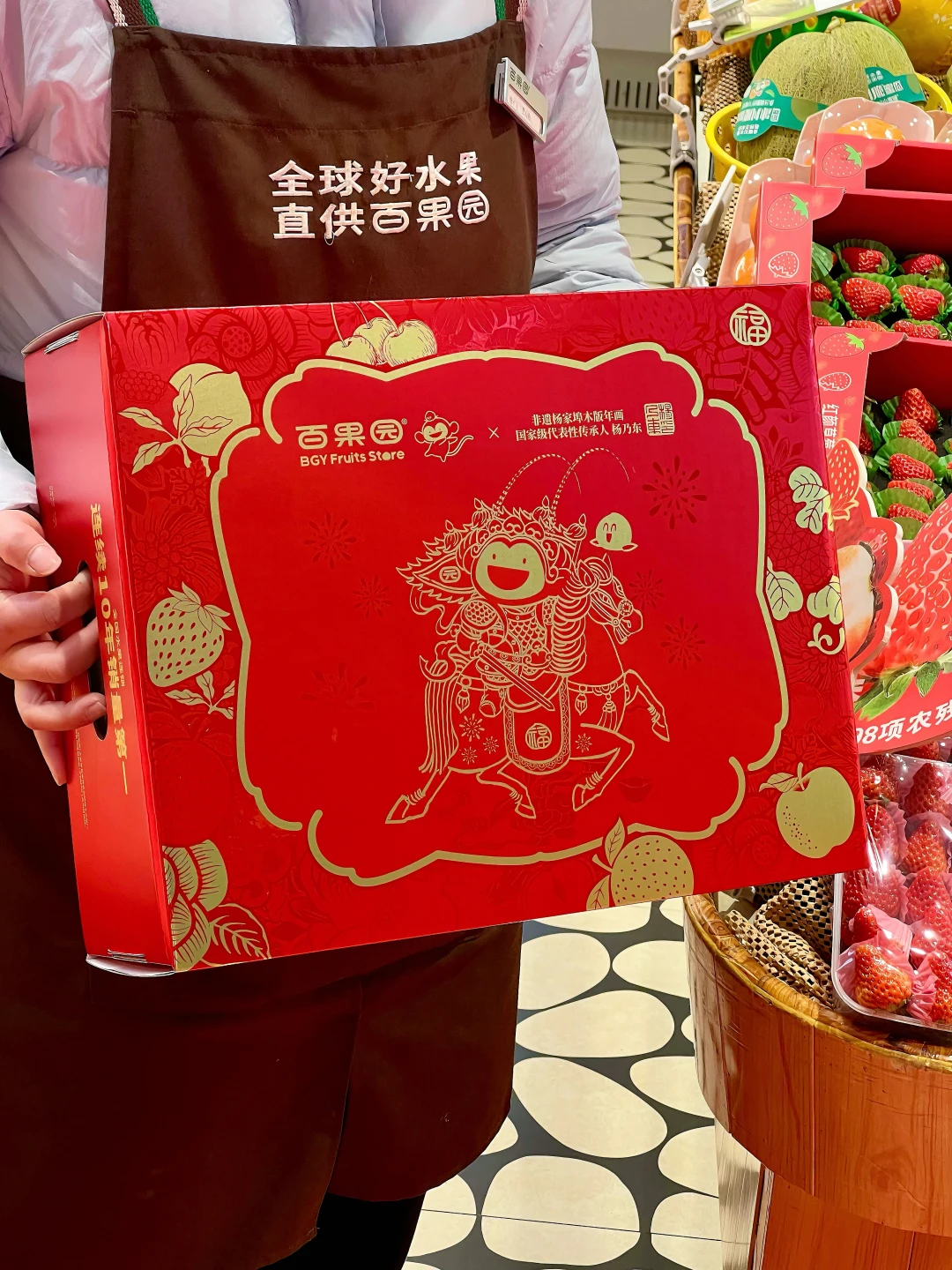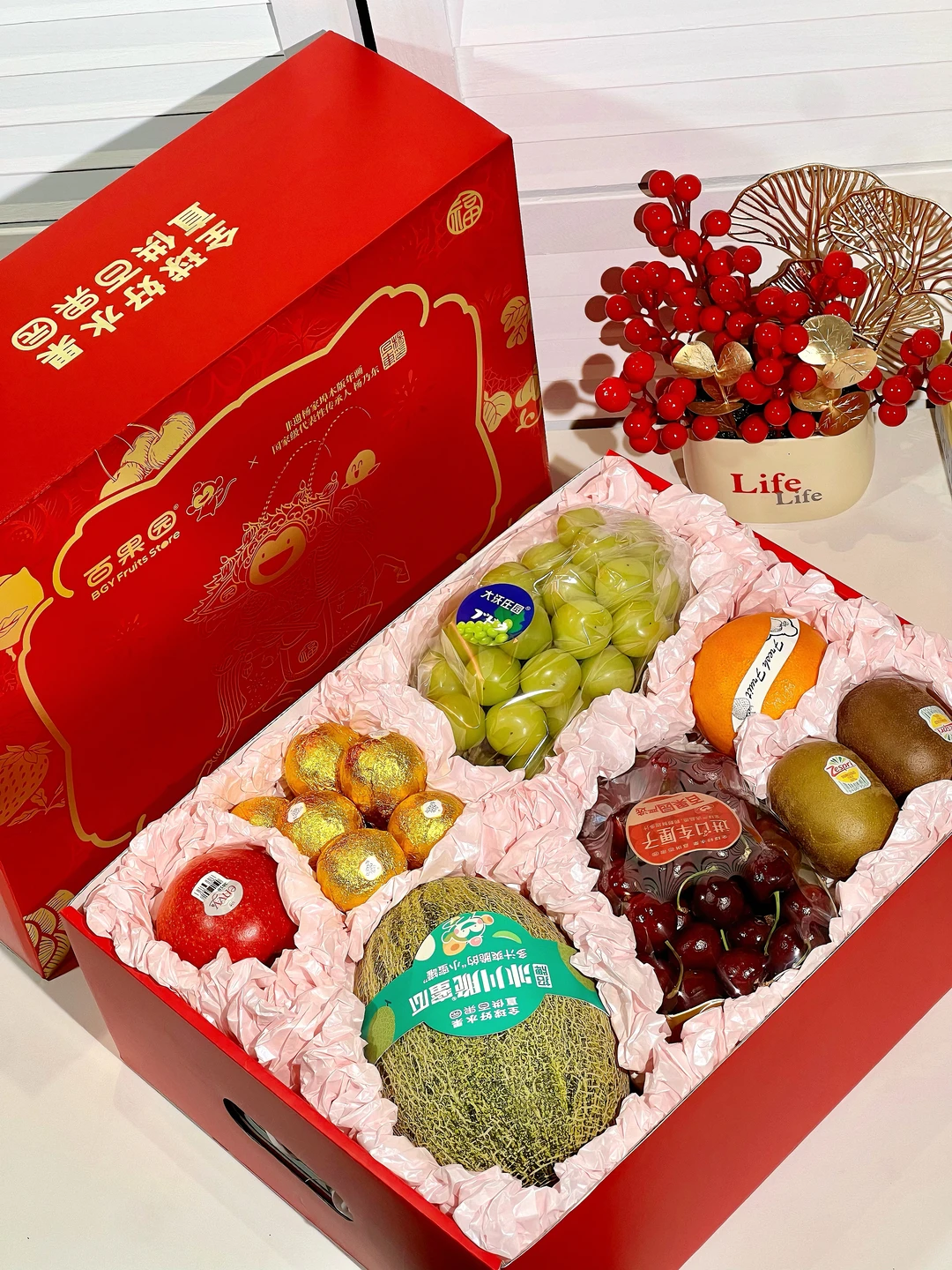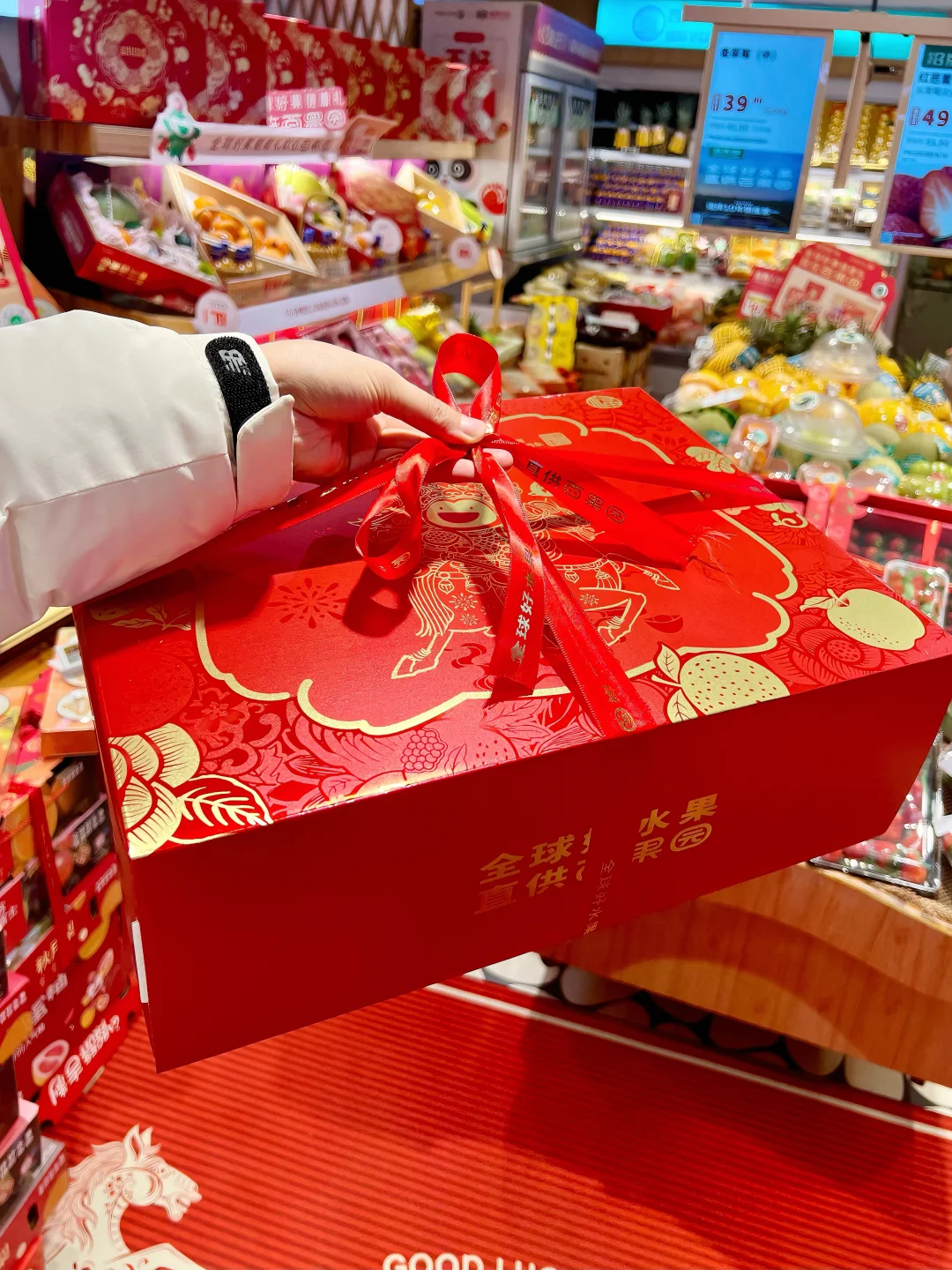 啊啊啊啊百果园这个马上好运水果礼盒太美了叭😍 红金配色的包装超级喜庆!年味儿一下就上来了~