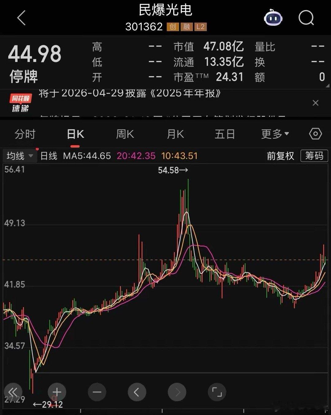 个股消息,明天(2026年2月2日)将有三只个股复牌,民爆光电(301362)、
