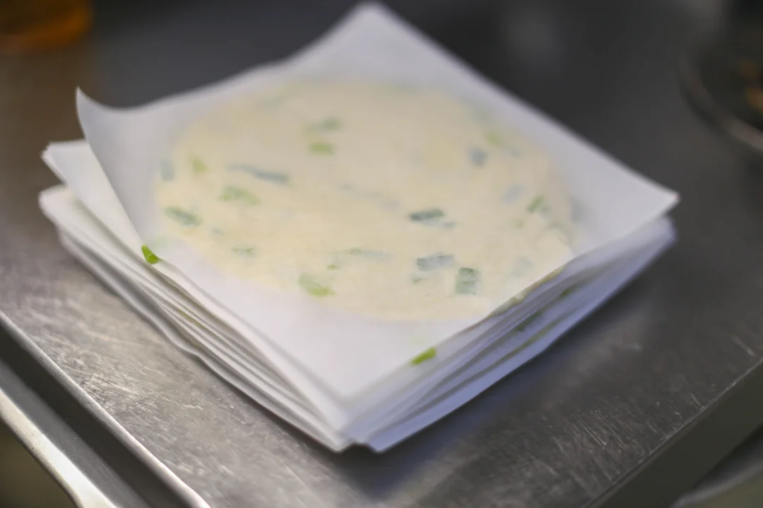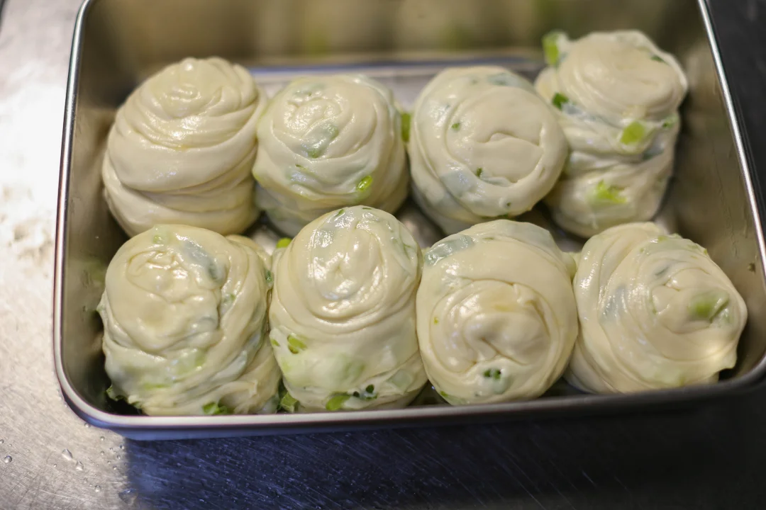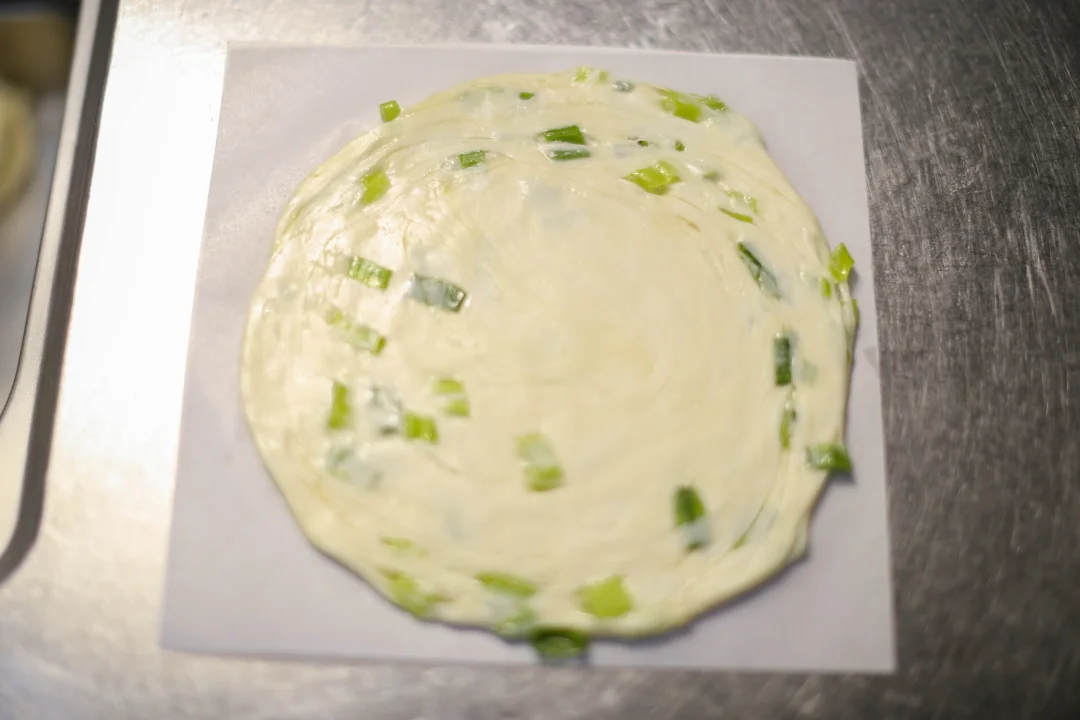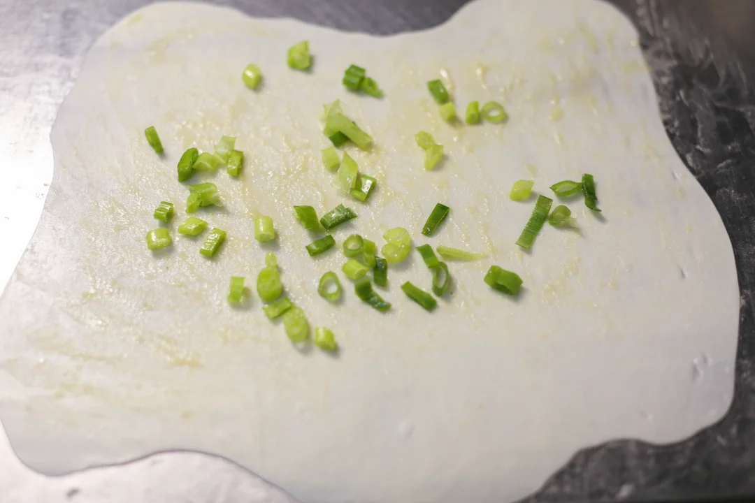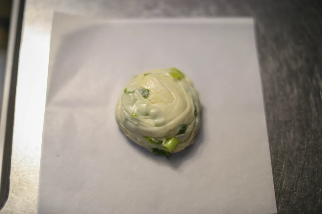 用半烫面的手法来制作面团,含水量比较高,最终的面饼会比较软。面团的粘性也比较高,揉面的时候可以在手上蘸点水或者食用油。