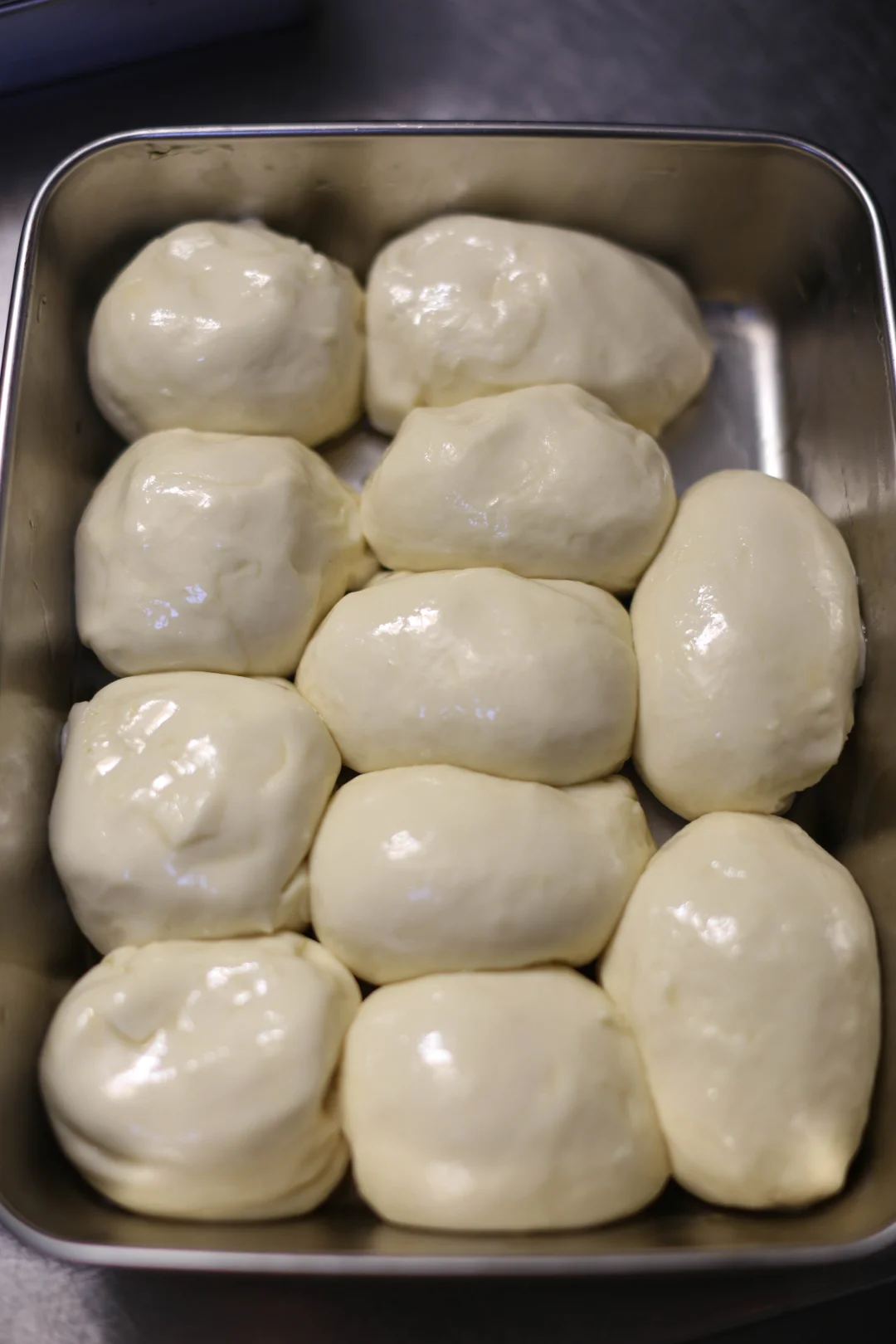 3️⃣:将饧好的面团分成100克/个的剂子,将面剂子放入盘中,抹上一层食用油,盖上保鲜膜,饧发30分钟。