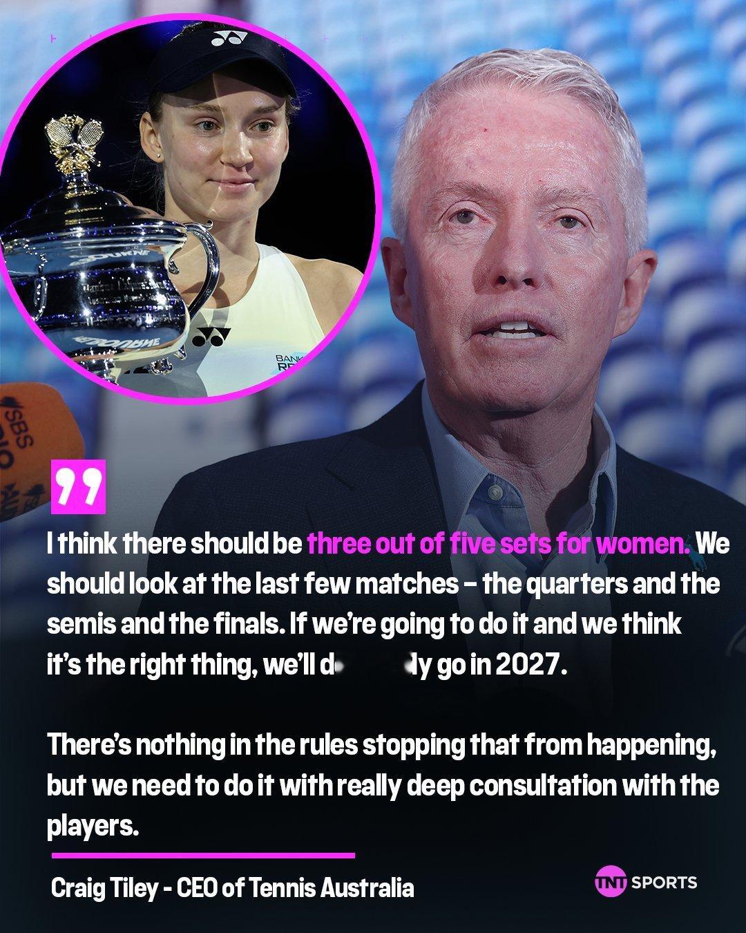 澳网赛事总监克雷格·泰利对女单深轮次采用五盘三胜制持开放态度: