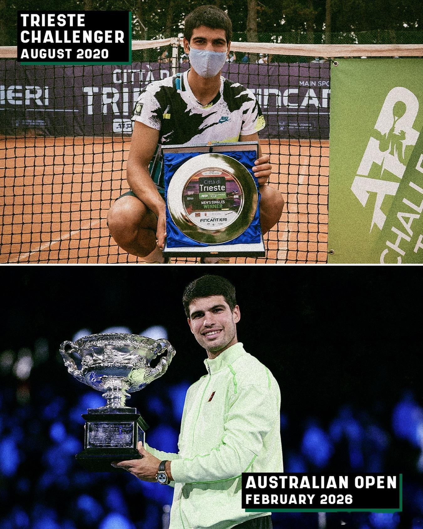 ✅2020的里雅斯特 👉夺得首个挑战赛冠军 ✅2026澳网 👉成为最年轻的全满贯