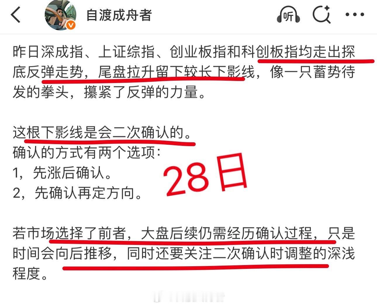 当天盘后我就说过,这根下影线后续会有一个再次确认的过程,当时还给了大盘两个选择:1️⃣要么先涨再确认,2️⃣要么先确认再上涨。