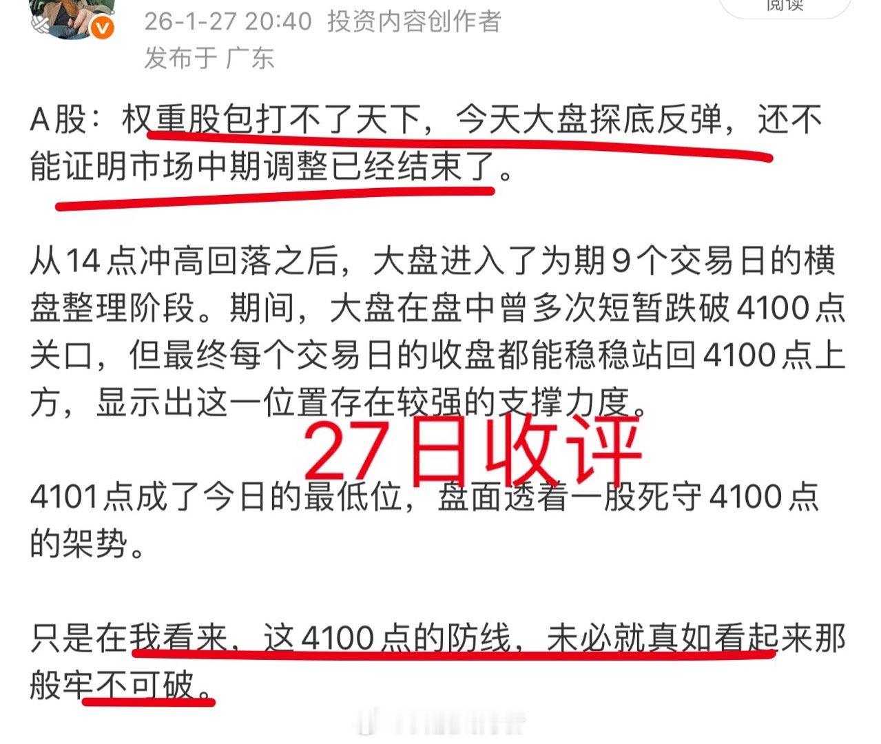 同时我也明确提到,尽管盘面看起来在死守4100点,但这个点位其实并非牢不可破。