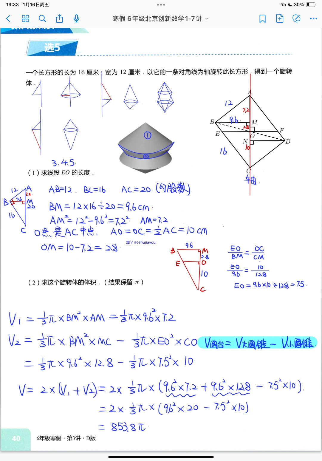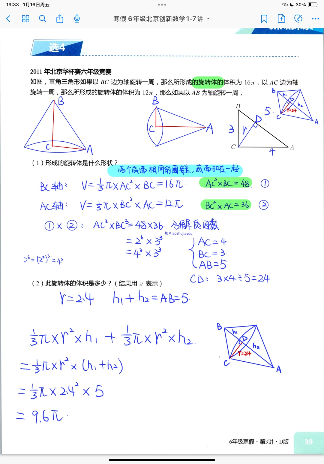 风筝模型 五年级秋季创新班奥数课堂笔记