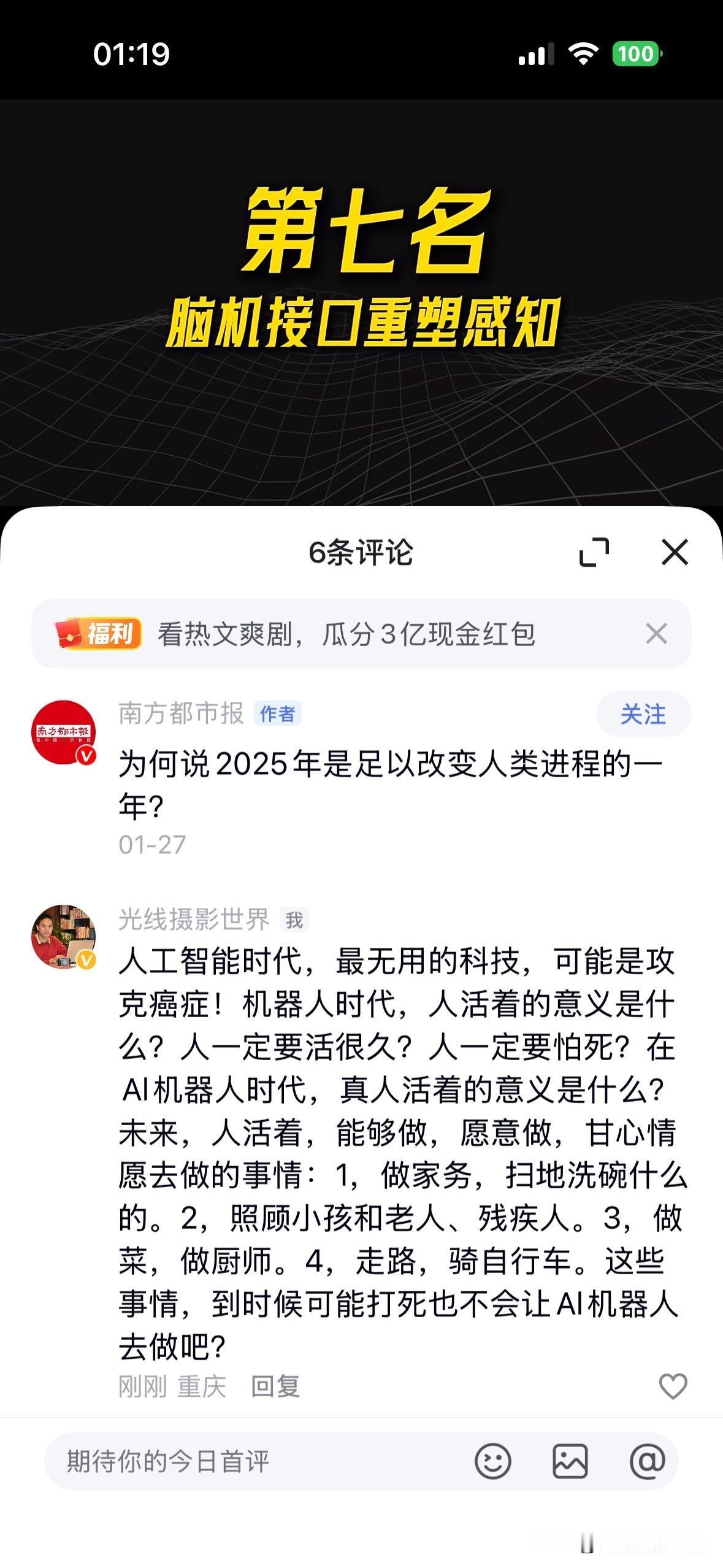 人工智能时代,最无用的科技,可能是攻克癌症!机器人时代,人活着的意义是什么?人一定要活很久?人一定要怕死?在Al机器人时代,真人活着的意义是什么?未来,人活着,能够做,愿意做,甘心情愿去做的事情:1,做家务,扫地洗碗什么的。2,照顾小孩和老人、残疾人。3,做菜,做厨师。4,走路,骑自行车。这些事情,到时候可能打死也不会让Al机器人去做吧? 人工智能Al机器人普及之后,人,真人,不用去工作赚钱了! 人工智能Al机器人普及之后,人,真人,一定会抢着去做家务,为了争取扫地洗碗的机会,人们会争个你死我活!到那时候,人人都会争着抢着去洗碗!再也没有人会讨厌做家务了!