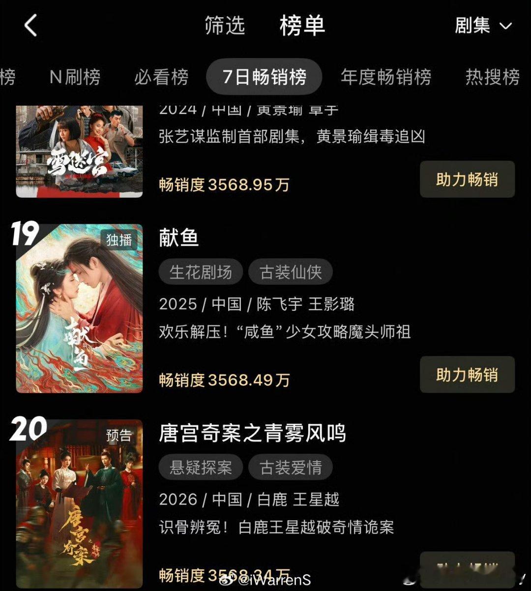 白鹿《唐宫奇案》还没播就登上了优酷周榜拉新,鹿姐的剧粉盘太强大了,期待一番大女主李佩仪!