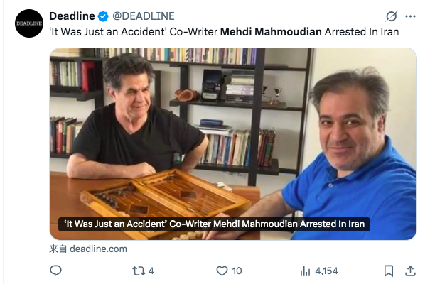 TNABO 《纯属伊朗意外》联合编剧已被伊朗当局逮捕