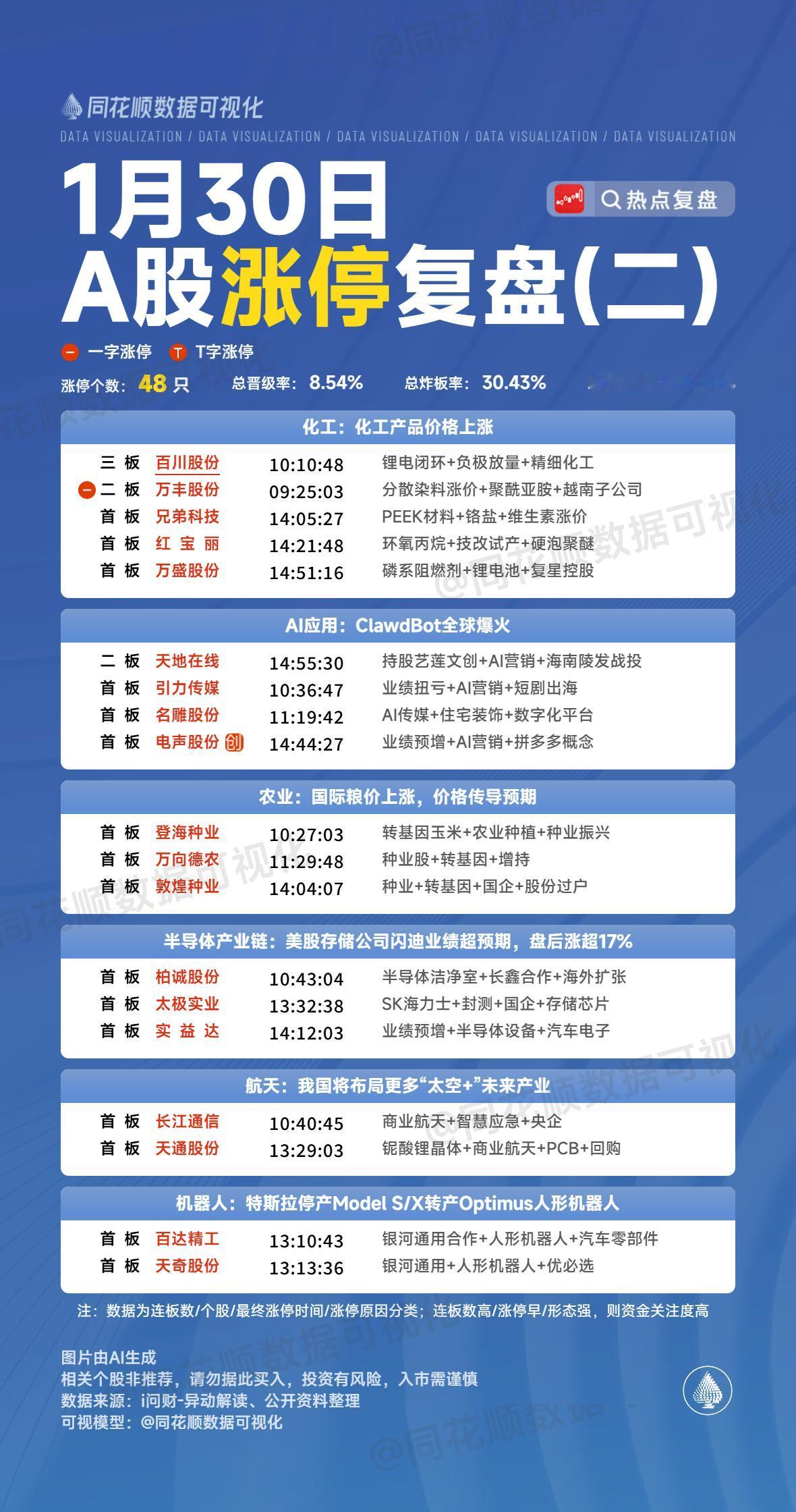 2月2日盘前预案:金银暴跌后,市场短线主流题材再次到了资金角逐选择的时候! 1、1月份最后一个交易日,风光无限的有色方向迎来了暴击,多只个股受到期货大分歧影响开始兑现,其中白银有色的一字跌停成了导火索,毕竟板块龙头闷杀跌停,对于整个板块就是灾难!与此同时,市场整体也是非常大的调整,但是创业板走出了非常强势的探底回升,沪指也从跌幅超过2%到尾盘收窄到1个点以内,市场量能出现明显缩量,但是仍然保持在2.8万亿,这说明市场是一个比较明显良性的调整,金银短期风险释放主要原因是期货开始掉头,毕竟这次金银的大行情和国际期货的大幅拉升不无关系,考虑到周五夜盘国际金银出现了史诗级暴跌,那么这样的情绪发酵在周一会有持续,这个方向或许会持续杀跌,特别是白银有色大单封死跌停的情况下,整个板块暂时是不适合去抄底的! 2、锋龙、嘉美今日复牌,这对于市场短线重组个股来说会是个风向标,特别是锋龙,停牌前顶着暂停部分投资者交易涨停达成了18板,这样的表现确实逆天,但是从之前天普再次停牌后的表现看,锋龙情形肯定不妙,一旦它负反馈一字地板,对于短线高位个股的影响会非常大,特别是同样重组方向的个股! 湖金就是典型的重组叠加黄金题材,资金周五选择强顶涨停更多的是因为它重组的因素,所以从情绪上看,金银板块弱势表现对它影响不会特别大,但是结合锋龙的复牌,一旦锋龙也是负反馈,那么湖金可能也就凉凉了,这只个股开盘资金的选择非常重要,如果直接大幅低开的话就真的要小心直接兑现风险,毕竟它所属两个方向都是明显承压的,而且核心个股都可能一字跌停! 3、周五CPO方向逆势大涨,盘后中际、新易盛业绩预报都是非常漂亮,这个方向或许会是资金的一个选择,毕竟现阶段的市场没有绝对主线,但是量能还在,题材前排个股的主动性或许会还在,如果易中天能在早盘表态,这个方向或许会有强势连板个股出现! 通鼎毫无疑问是最可能走出来的个股,连续两天炸板后,周五迎来了大长腿突破涨停,一旦它竞价出现明显抢筹,走出持续性的表现还是比较值得期待的,特别是易中天如果能够在开盘有所表现,通鼎作为小盘股确实会是资金做多的首选! 亨通是这个方向中军涨停个股,它也许很难连板,但是开盘能稳住趋势向上的话,对于板块整体会有明显促进,也就是说开盘如果亨通不出现明显的高开低走,会对整个CPO有带动,那么通鼎竞价不弱的情况下就比较适合接力! 4、闪迪财报引爆存储芯片方向,再加上涨价的逻辑,所以存储这一块也是比较有看点的,但是周五美股存储方向明显兑现,闪迪也是高开低走,对于A股的存储芯片肯定会有一定影响,但是美股之前存储连续暴涨A股也没有出现明显跟随,所以这个影响可能并没有我们想象中的要大! 太极算是这一方向比较强势的个股了,11.22这种对子顶都能有资金强承接回封,说明主力资金做多意愿还是比较强势的,一旦板块有持续表现,太极开盘的表现还是比较值得期待的,但是这只个股能不能接力很难说,毕竟近期存储方向除了康强偶尔走出连板,其余个股几乎都是一日游,除非板块整体强势出现带动! 5、元宝的新春10亿对于AI应用是有带动的,但是周五这个方向除了天地顶住分歧烂板涨停,其余前排个股多数高开低走兑现,所以早盘天地能不能弱转强是一大看点,如果天地都不能弱转强,那么这个方向今日可能会退出主线的竞争! 6、周末最强消息面当属变压器爆单了,这对于前期炒作过的电网设备方向肯定会有促进,特变和西电两只中军个股必然会有所表现,竞价开出来后是趋势上行还是高开低走,会是这个方向的一个风向标,如果整体趋势不错,那么资金或许会有记忆的去保变、三变和汉缆这些前期走出来过的龙头,那么最早上板的就很可能会是这一方向这一波的龙头! 7、SpaceX申请发射多达100万颗卫星是周末另外一大看点,这毫无疑问利好的是持续调整的商业航天,再加上其他几个利好,对于商业航天来说,整体是利好不断的,而在现阶段金银方向大幅回调的情况下,这个方向或许会有重新爆发的可能,从周末发酵看,西部成了最具辨识度个股,那么它早盘的表现对于整个商业航天就极具看点了,如果它开盘后能够快速上板,整个商业航天或许会迎来久违的高潮,反之,那么商业航天可能会继续伤人下去! 8、化工涨价逻辑使得这一方向走出了一定持续性,红宝丽连续多日冲高拉板后终于彻底封住了一次涨停,但是盘后的业绩预报不太友好,隔日想要走出来会有难度,但是从红宝丽整体趋势看,只要化工方向能够反复,它依然会是这个方向最核心的个股,也许小幅回调够会继续爆发,所以它的表现是可以持续关注的! 说实话现阶段短线接力非常难做,打板可能并不是很好的选择,所以在短线情绪没有复苏之前,更多的应该去做低吸,或者板块强势情况下的核心半路,这样的话或许能够更好的控制回撤! 本文只限于分享和交流,不构成投资建议,股市有风险,投资需谨慎!