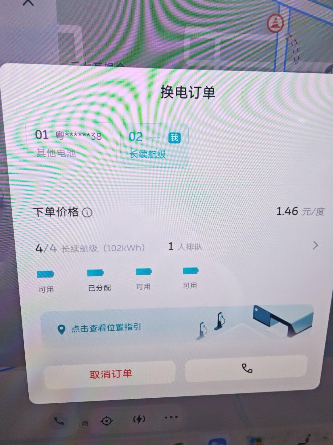跑了近500公里后,开始第一次换电啦,更牛的是这里有4块102度的电池可用