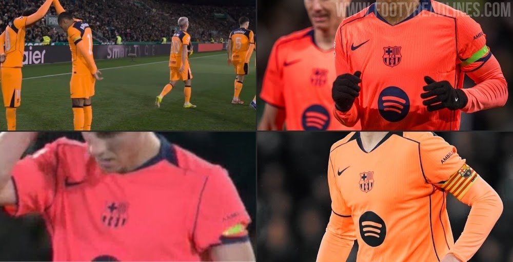 足球装备网:巴萨对阵埃尔切比赛转播镜头中巴萨橙色球衣颜色变化很大。埃尔切vs巴萨巴萨埃尔切1比3巴萨