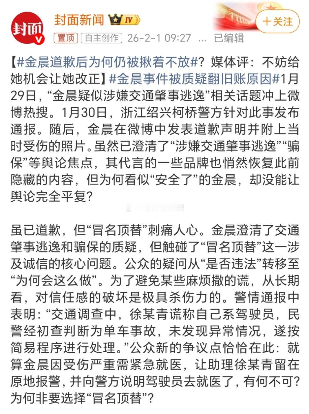 金晨道歉后为何仍被揪着不放法律面前人人平等