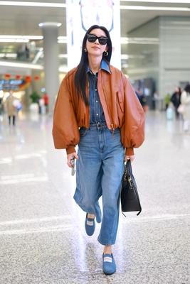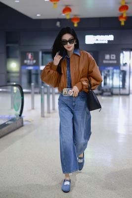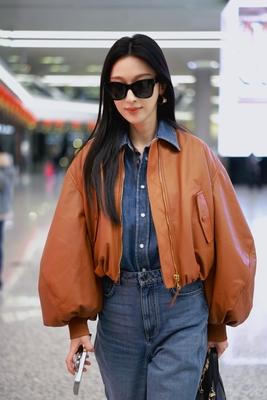 张俪冬季机场穿搭 棕色短款夹克配牛仔套装 率性十足不失时尚 而且看起来很有个性 这样的穿搭太适合张俪了 怎么看怎么飒,好看 值得一提的是 像张俪穿的这种夹克 身材不好的人一定不能穿 谁穿谁一言难尽 切记切记