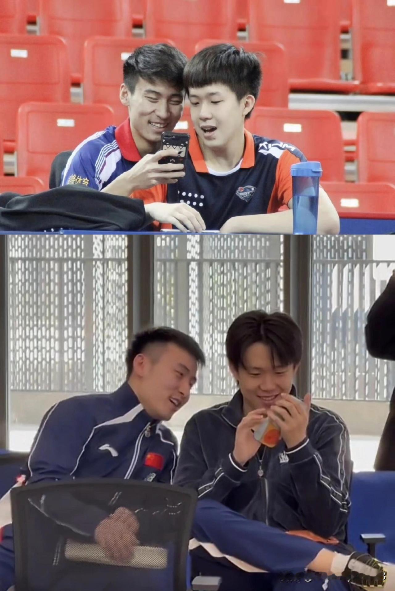 王楚钦的进校园活动,带着牛牛一起,两个人还和小时候一模一样。 今天在海口参加了国球进校园的活动,王楚钦和陈俊菘,牛牛一起。 在等待的时候,两个人凑在一起看手机,图2,感觉是不是一样的,这么多年没有走散,实属不易。 上午在学校好好玩,大家看到他们也都很激动。 亚洲杯加油哦。
