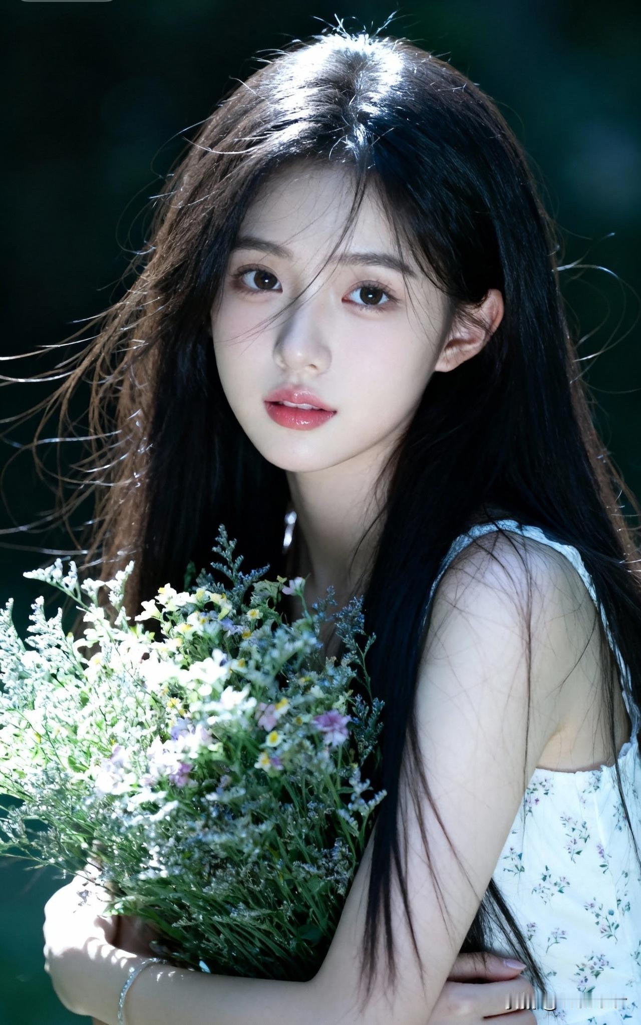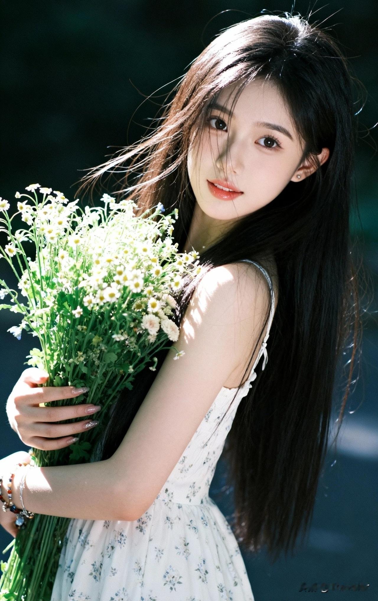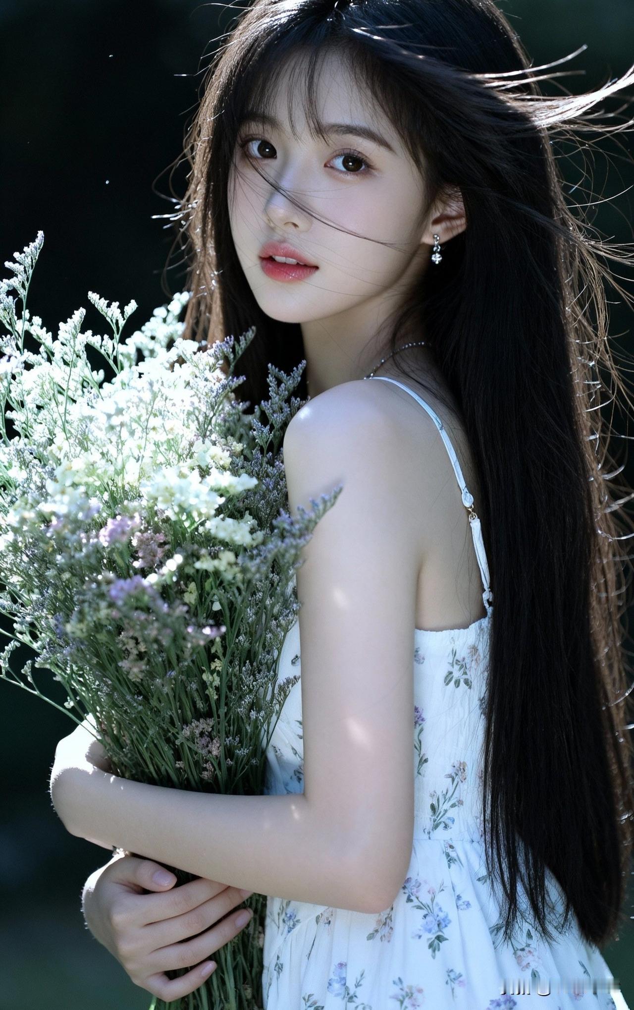 温柔少女与花海相遇,自然之美尽显眼前。🌸💐🌿