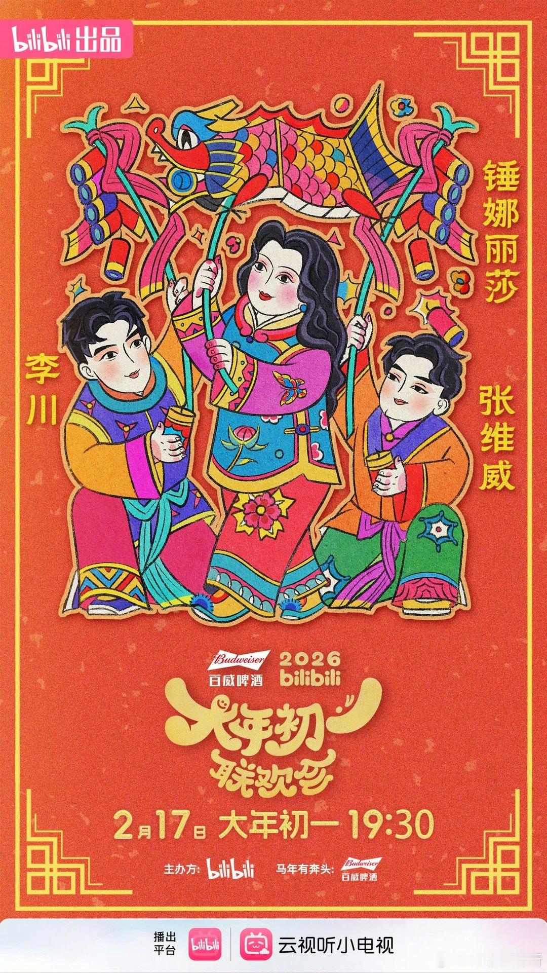 B站大年初一联欢会阵容官宣B站大年初一联欢会 对着镜子练习了好久年画娃娃的标准微笑,不知道到时候能不能自然流露。这种既传统又新鲜的尝试,让人格外期待。大年初一19:30,B站见分晓,记得来给我们打分!