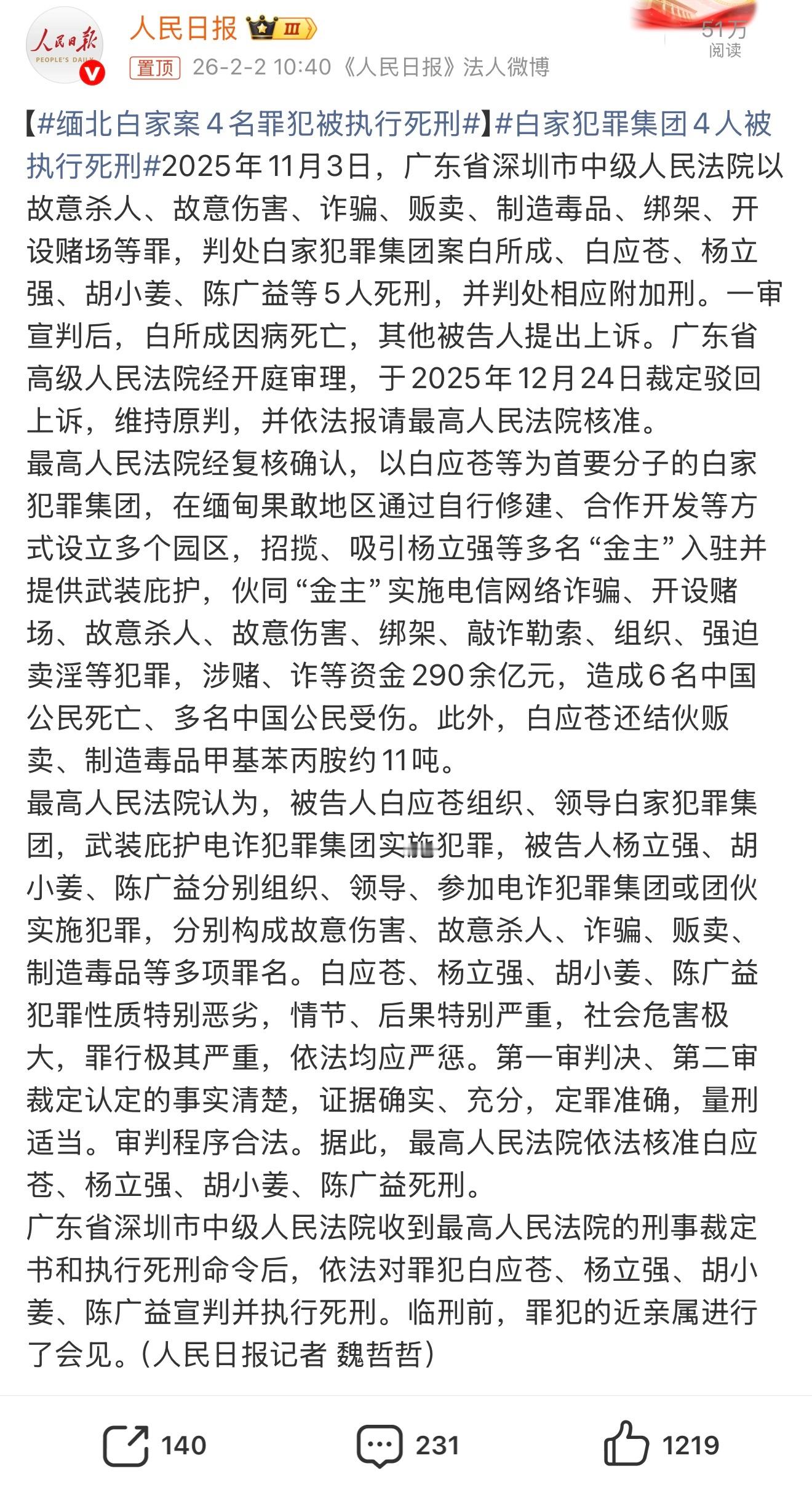 白家犯罪集团4人被执行死刑老北京有句老话,别看你之前闹得欢,现在就拿你炼金丹,这种超恶劣行为必须立即就地正法!